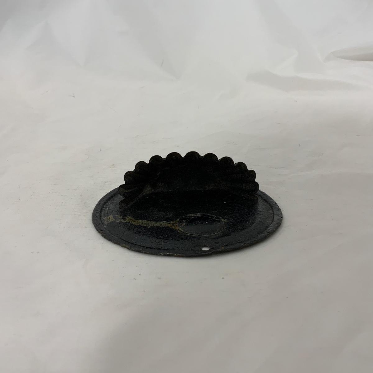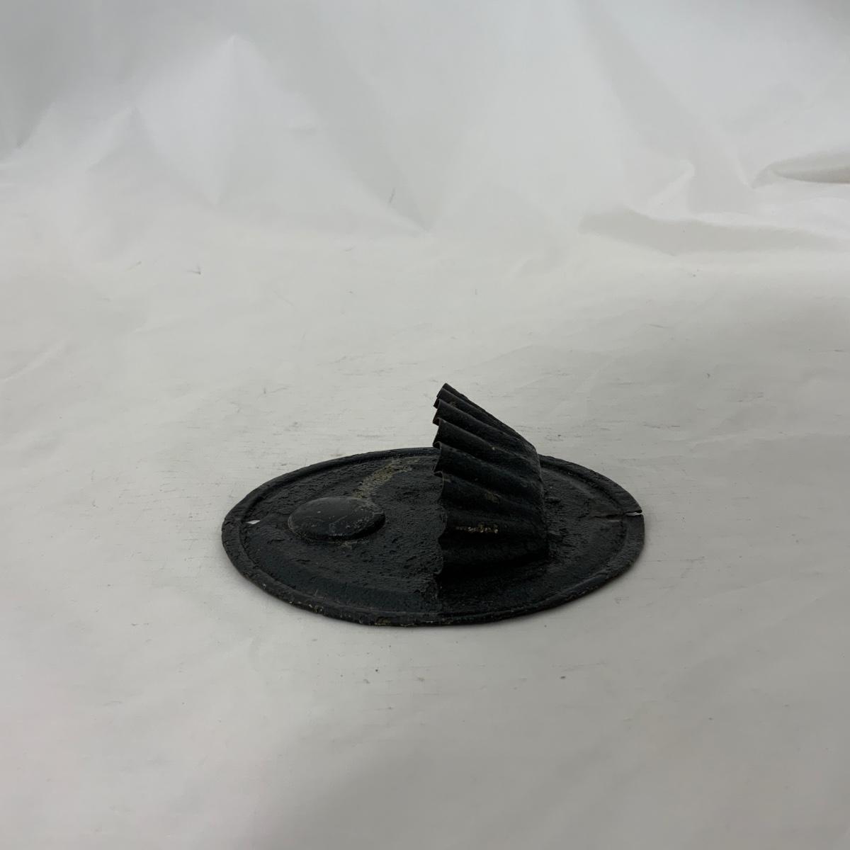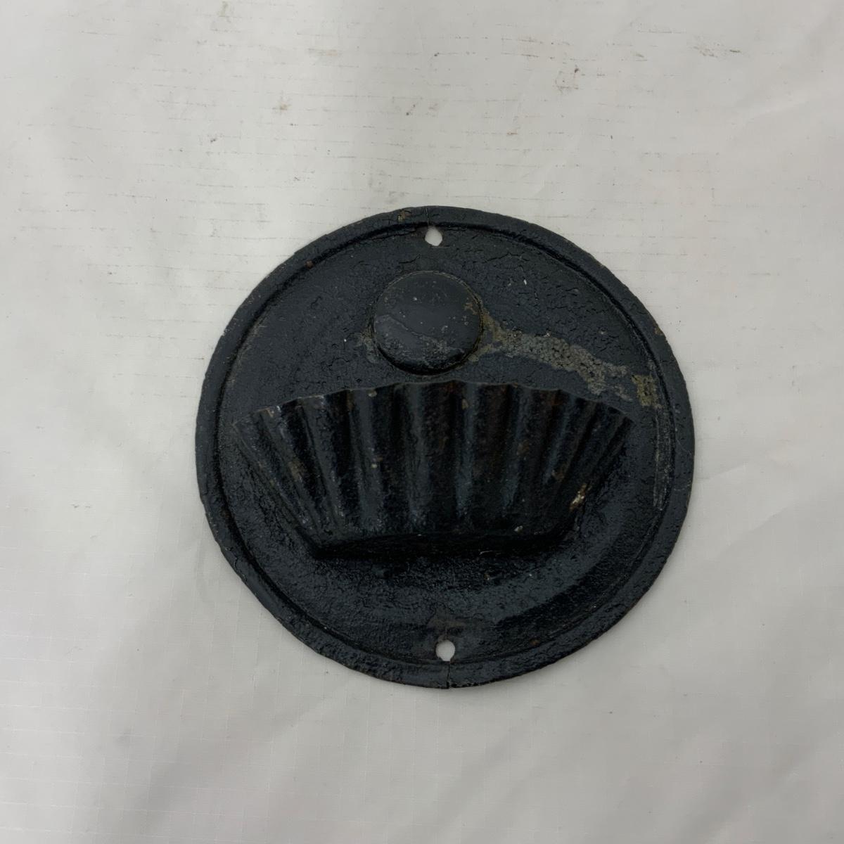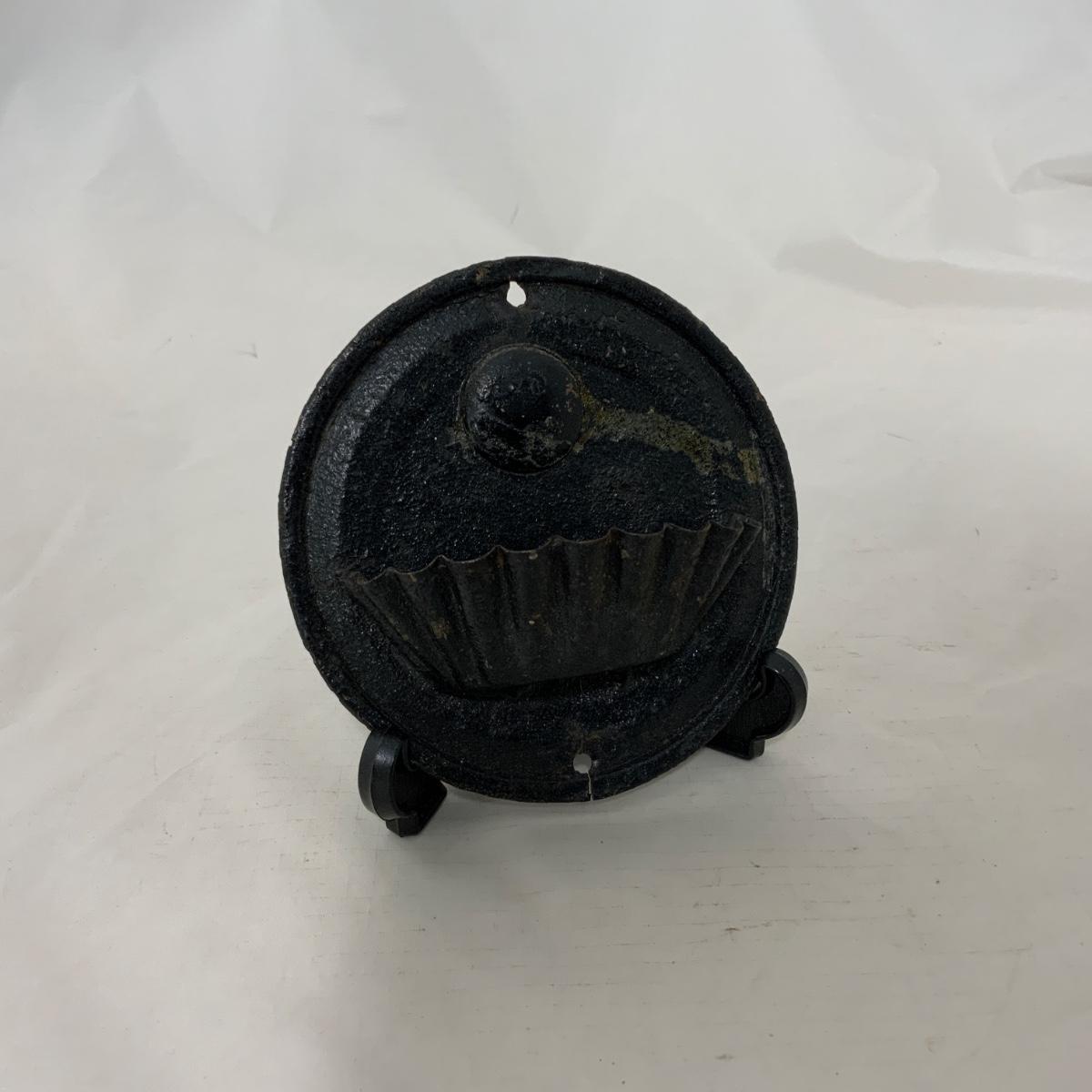 Unique Tin Wall Match Safe. It looks like they used a cupcake mold to make the holder. How resourceful! The holes at the top and the bottom have broken over the years, as you may be able to see. I think if you were to use both of them with a nail with a larger head, you shouldn’t have any issues with it. Please see photos for details and condition. ::: Shipping is available on this lot. If you require shipping you must let us know at the close of the auction. We will coordinate with you after the item has been won. Shipping fees will include insurance up to or exceeding the value of all items being mailed. If you have any questions regarding this lot please contact the auctioneer either via this website, by direct email or by phone. PICK UP TIMES and other important information can be found in the TERMS and DESCRIPTION of the auction. Please take a look for pertinent information. Thanks!