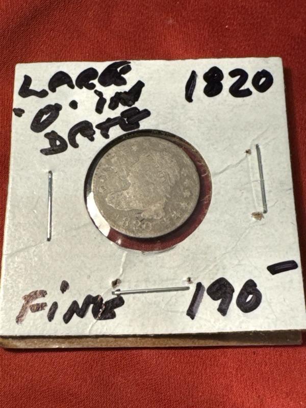1820 BUST LARGE 0 IN DATE 10c silver U S coin c110