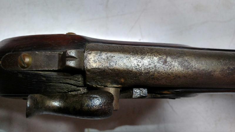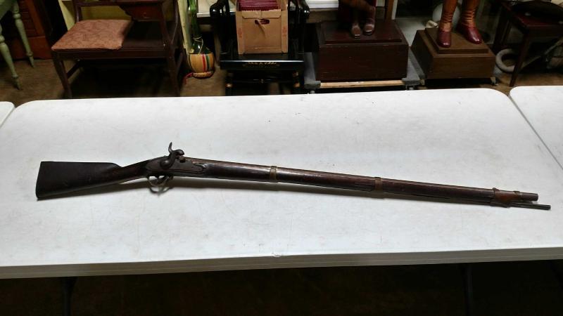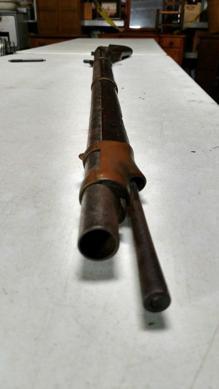 1821 Danzig Flintlock with Brass Furniture Marked C. S. A. and OHIO on Stock. 53" barrel. Brass in good condition. All parts seem to be present with matching marks on furniture. No permits required.