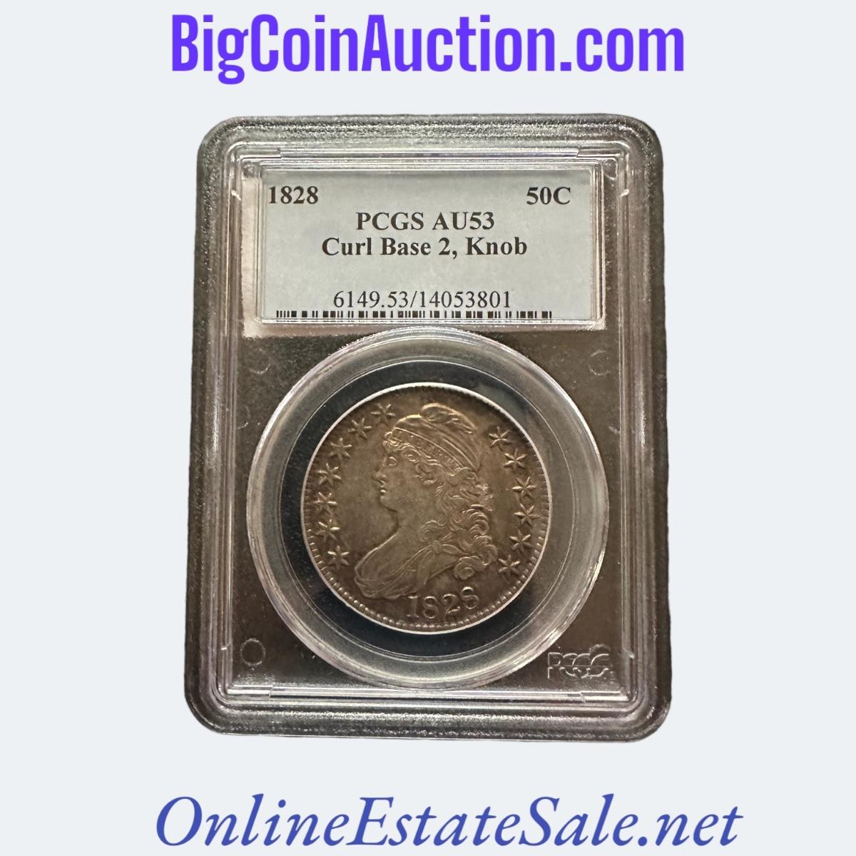 PCGS AU53 Curl Base 2, Knob 1828 50 Cents