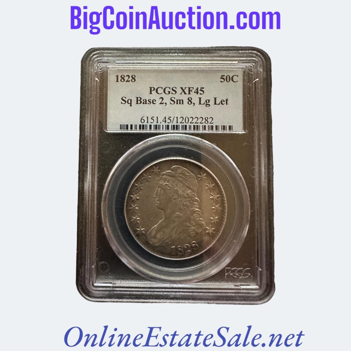 PCGS XF45 1828 50 Cents - Sq Base 2, Sm 8, Lg Let