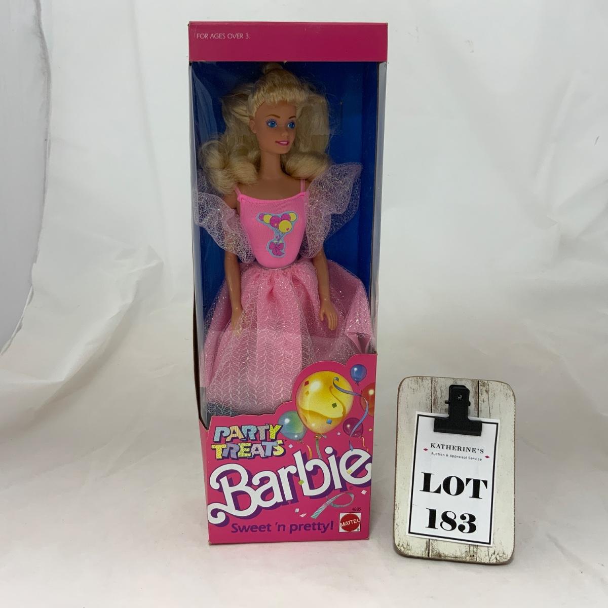 Party Treats Barbie, a super cute doll, produced by Mattel in 1989. Doll is new, in box. Please see photos for details and condition. !!! Proceeds from this auction will be donated to the NEW COMMUNITY SHELTER in Green Bay, Wisconsin. Please see Sale Description to the Left for more information. !!! ::: Shipping is available on this lot. If you require shipping you must let us know at the close of the auction. We will coordinate with you after the item has been won. Shipping fees will include insurance up to or exceeding the value of all items being mailed. If you have any questions regarding this lot please contact the auctioneer either via this website, by direct email or by phone. PICK UP TIMES and other important information can be found in the TERMS and DESCRIPTION of the auction. Please take a look for pertinent information. Thanks!
