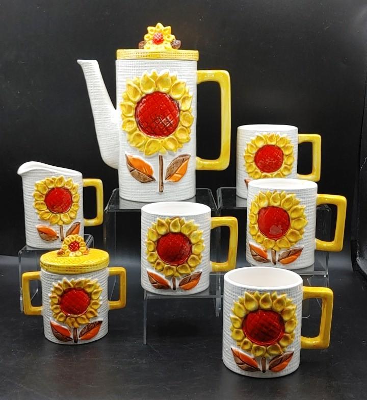Rare Vintage Napcoware Sunflower Tea Coffee Set of 7pcs 1970s Ceramic C-8250 Japan