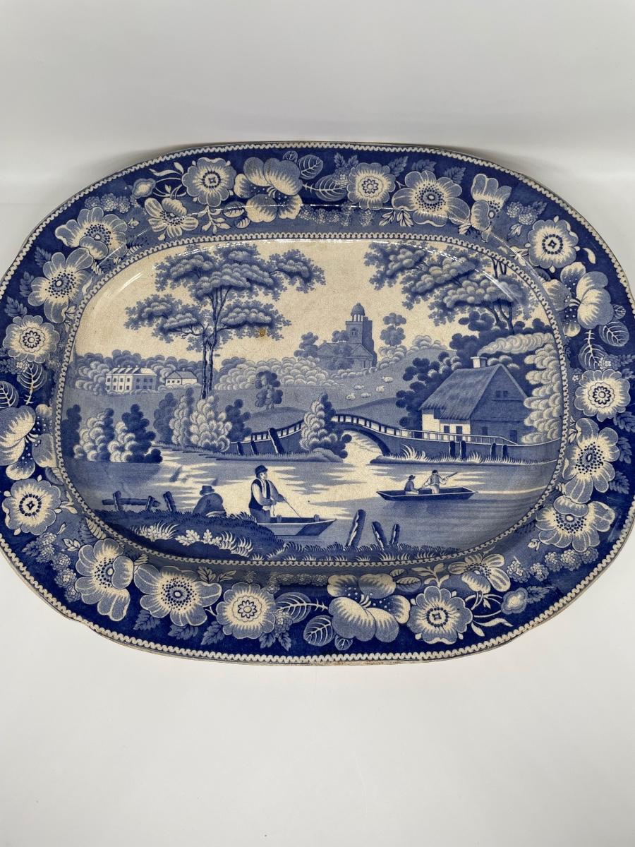Fell & Co. "Canal Scene" beautiful platter (one chip/brown spot - see pics) - 18" x 14.5" x 2" tall