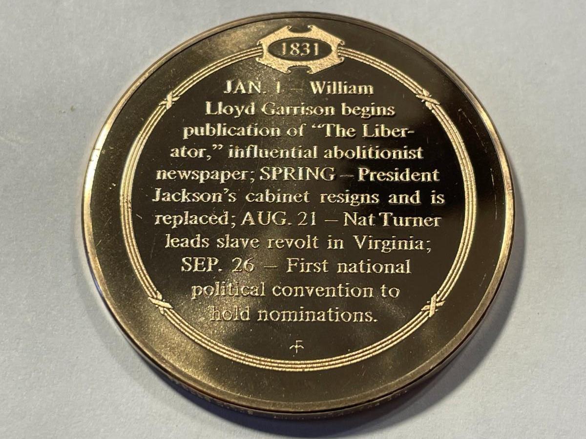 1831 THE LIBERATOR PUBLISHED TO FIGHT SLAVERY FRANKLIN MINT PROOF BRONZE MEDAL (MEDAL #103). FREE DOMESTIC SHIPPING.