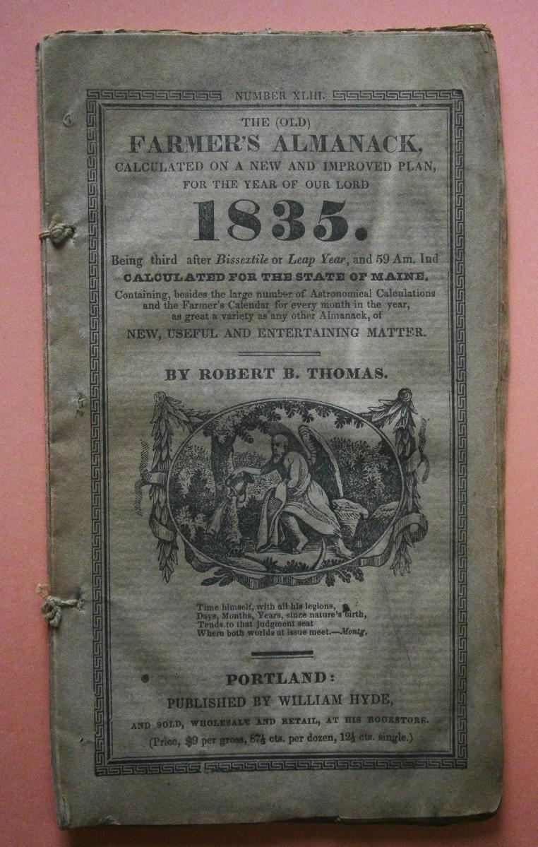 1835 FARMER'S ALMANACK printed in Boston for West & Richardson, 7 1/2 x 4 3/4 in., in rough condition.