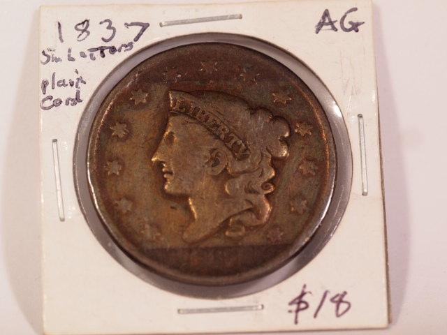 1837 Large Cent in AG Condition These are getting pretty rare and a good one is even harder to find this one is in AG Condition and is very collectible