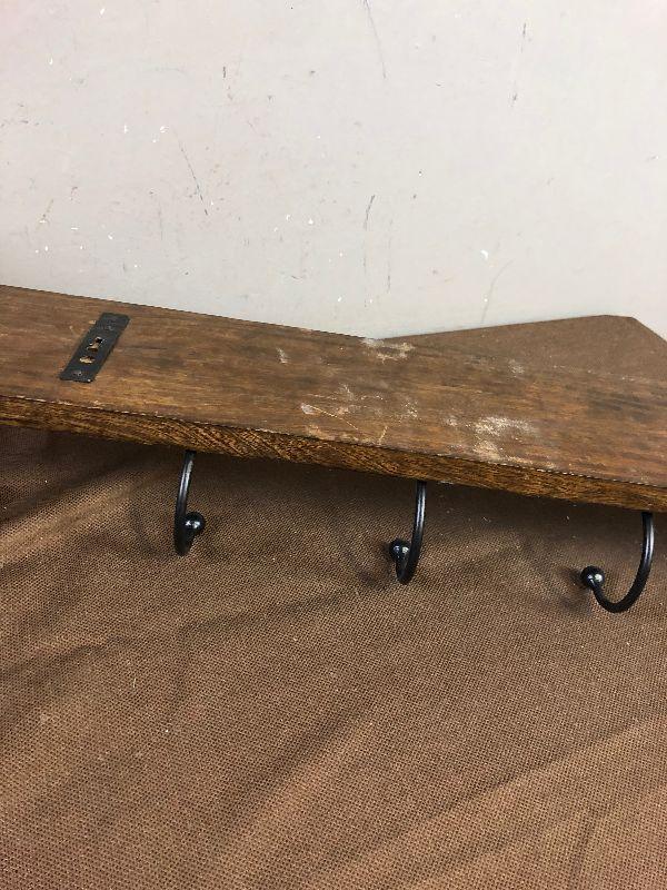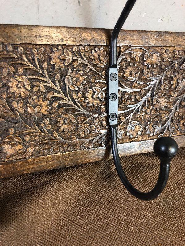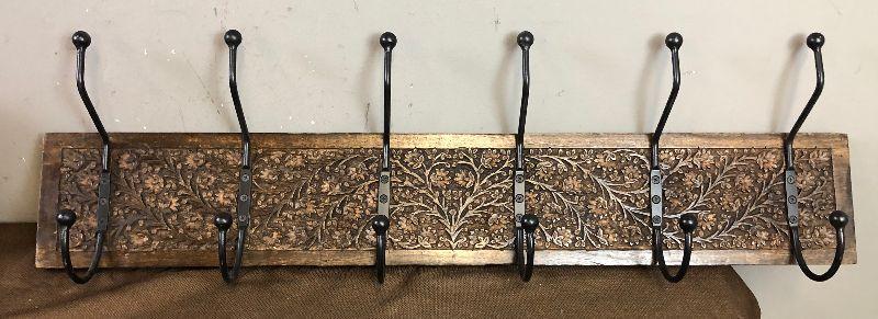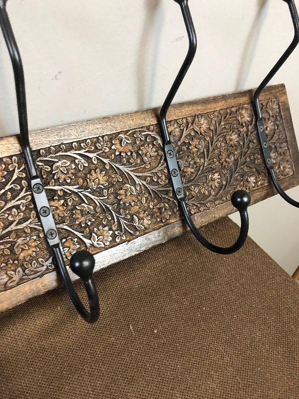 #184 6 double Iron Hooks on decorative wood
