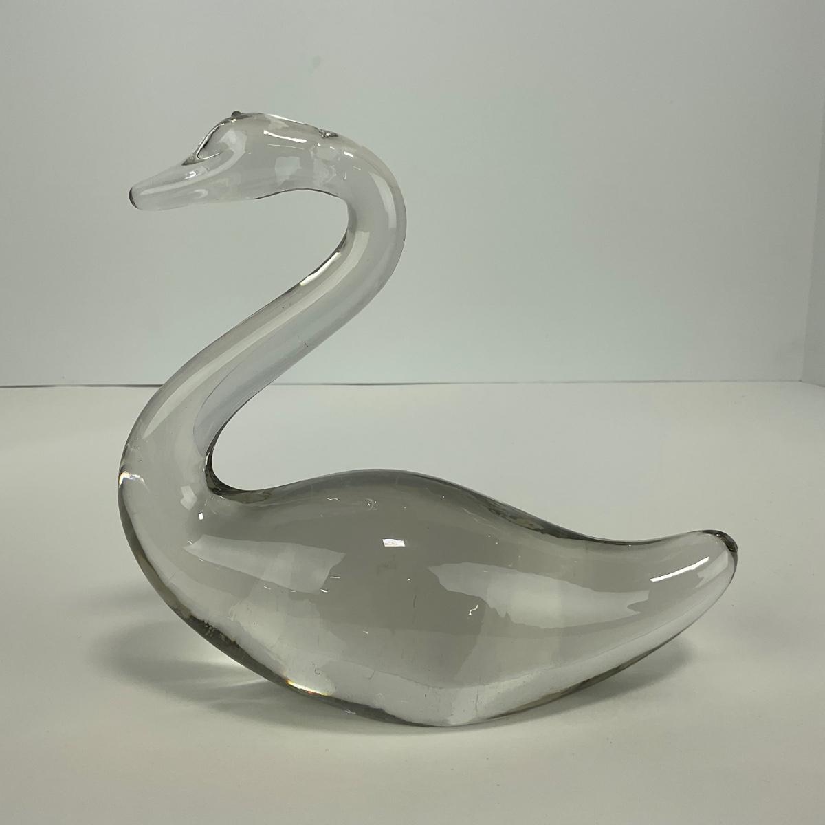 -184- ART GLASS | Clear Glass Swan Figure