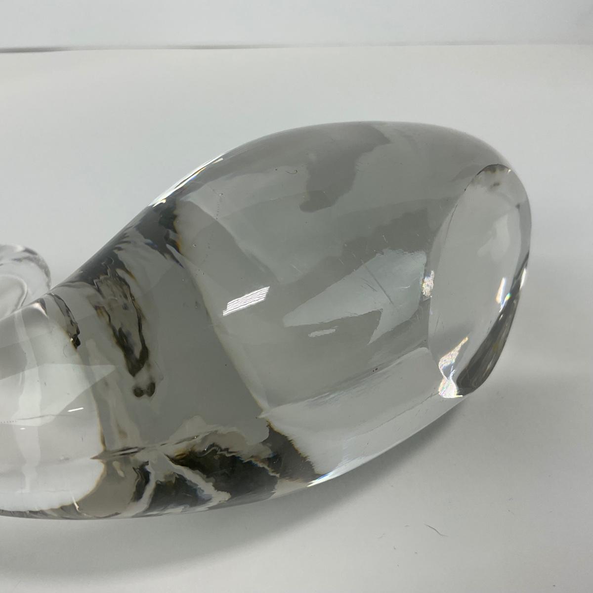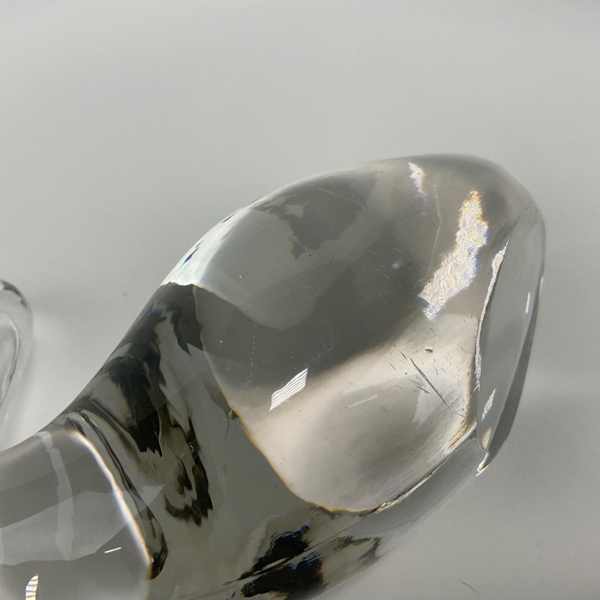 One medium large clear glass swan figure. This piece does have some scuffs, scratches, marks, or slight damage, but otherwise appears to be in great shape. Please see photos for details and condition. Any condition statement is given as a courtesy to a client, is an opinion, and should not be treated as a statement of fact. Reference to condition written, oral or within a condition report shall not be regarded as a full account of condition and may not include all defects, alterations, or restorations. Absence of a condition report does not imply a lot is flawless or lacking imperfections or damage. Katherine’s Auction & Appraisal Service shall have no responsibility for any error or omission. Returns shall not be accepted on the basis of condition. ::: Shipping is available on this lot. If you require shipping you must let us know at the close of the auction. We will coordinate with you after the item has been won. Shipping fees will include insurance up to or exceeding the value of all items being mailed. If you have any questions regarding this lot please contact the auctioneer either via this website, by direct email or by phone. PICK UP TIMES and other important information can be found in the TERMS and DESCRIPTION of the auction. Please take a look for pertinent information. Thanks!