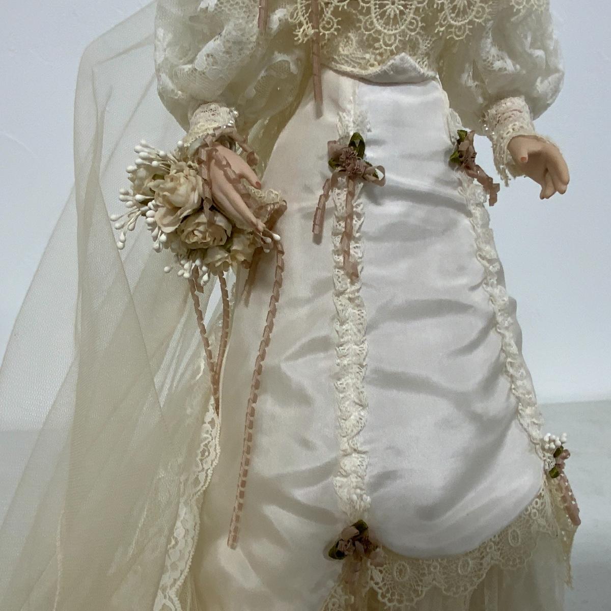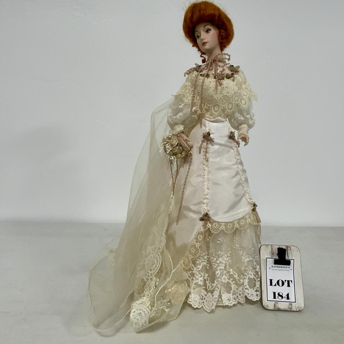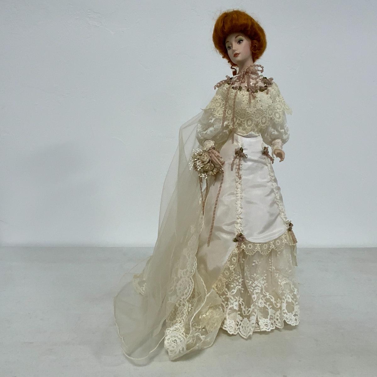 From the Estate of Peter and Alice Radovanovich: Stunning Franklin Mint Heirloom Doll in a Lacey Ivory Dress. Doll stands 22 inches tall. Please see photos for details and condition. ::: Shipping is NOT available on this lot. If you have any questions regarding this lot please contact the auctioneer either via this website, by direct email or by phone. PICK UP TIMES and other important information can be found in the TERMS and DESCRIPTION of the auction. Please take a look for pertinent information. Thanks!