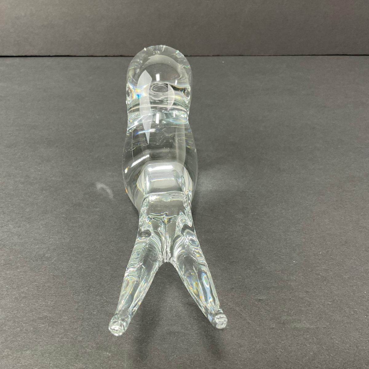 One believe to be Marcolin Ronneby Sweden art glass bird figure. This piece does appear to have some straw marks. Please see photos for details and condition. Any condition statement is given as a courtesy to a client, is an opinion, and should not be treated as a statement of fact. Reference to condition written, oral or within a condition report shall not be regarded as a full account of condition and may not include all defects, alterations, or restorations. Absence of a condition report does not imply a lot is flawless or lacking imperfections or damage. Katherine’s Auction & Appraisal Service shall have no responsibility for any error or omission. Returns shall not be accepted on the basis of condition. ::: Shipping is available on this lot. If you require shipping you must let us know at the close of the auction. We will coordinate with you after the item has been won. Shipping fees will include insurance up to or exceeding the value of all items being mailed. If you have any questions regarding this lot please contact the auctioneer either via this website, by direct email or by phone. PICK UP TIMES and other important information can be found in the TERMS and DESCRIPTION of the auction. Please take a look for pertinent information. Thanks!