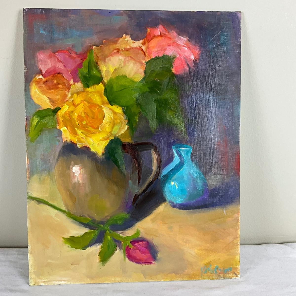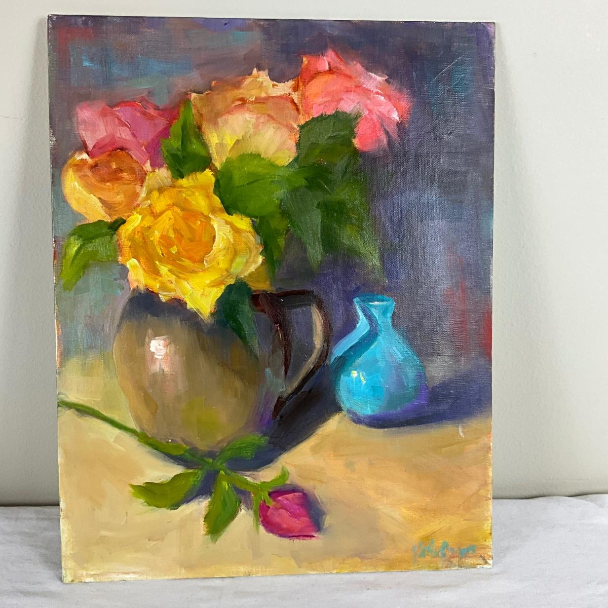184 Original Oil Painting "Roses in Pitcher" by Kathie Rogers
