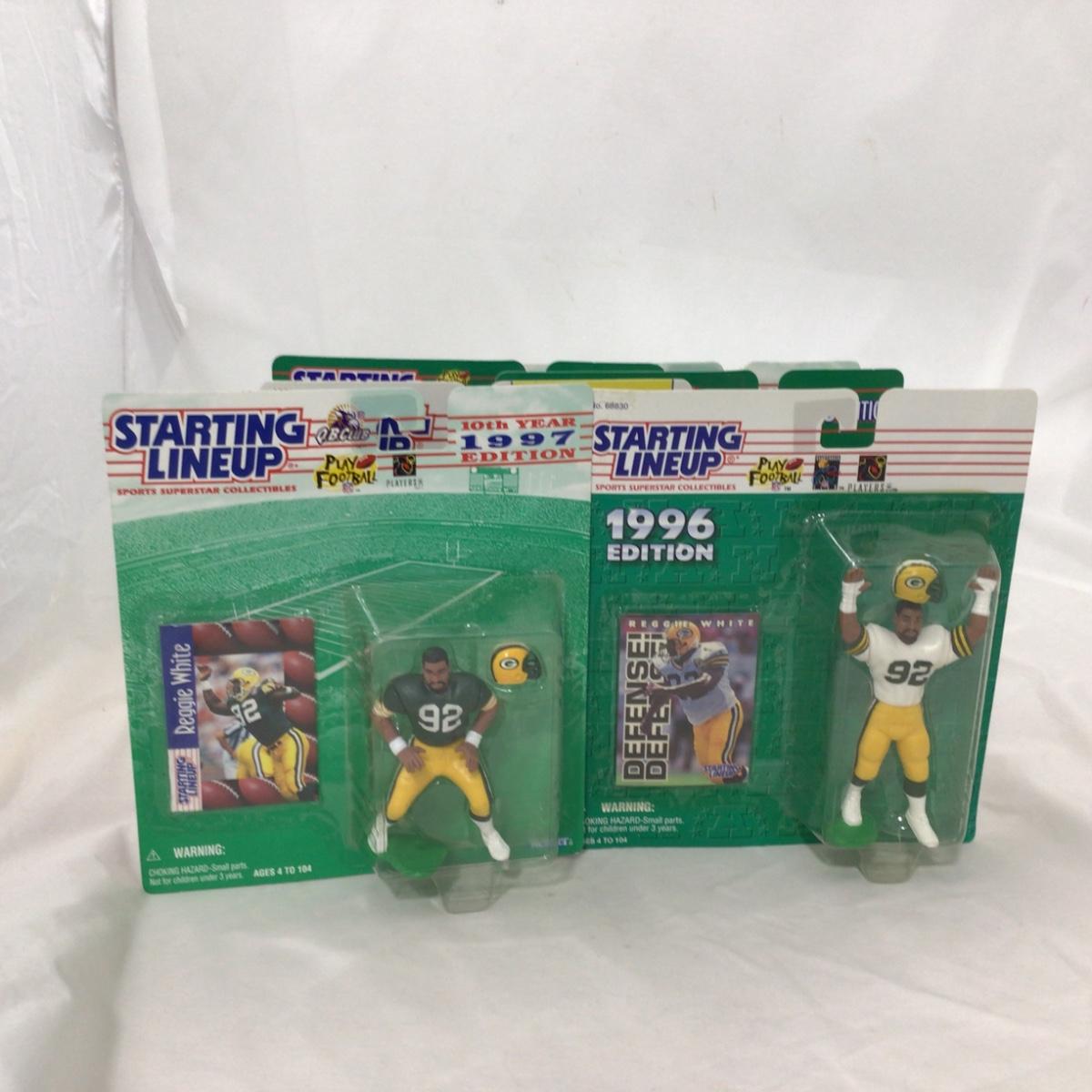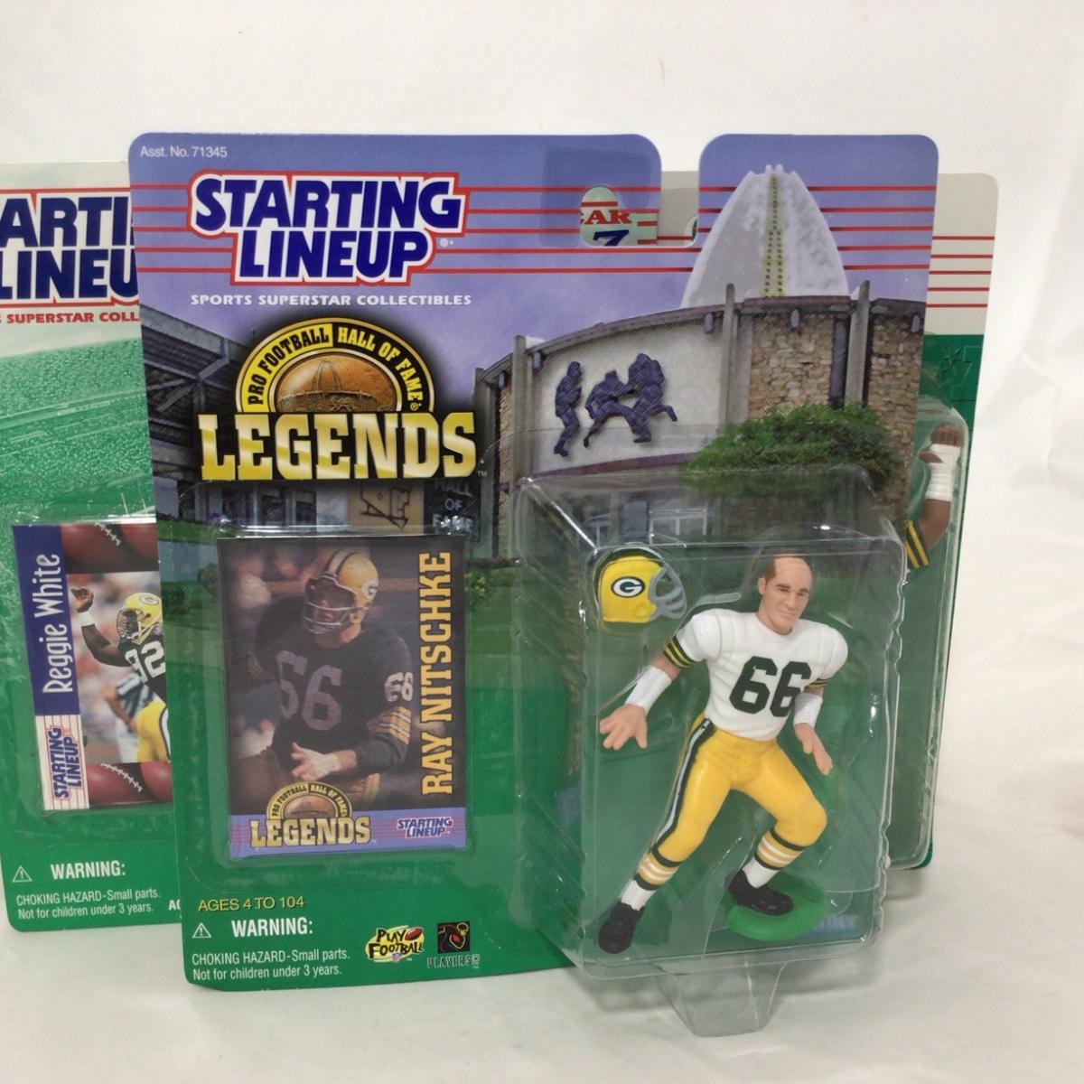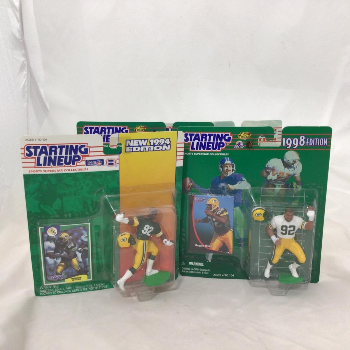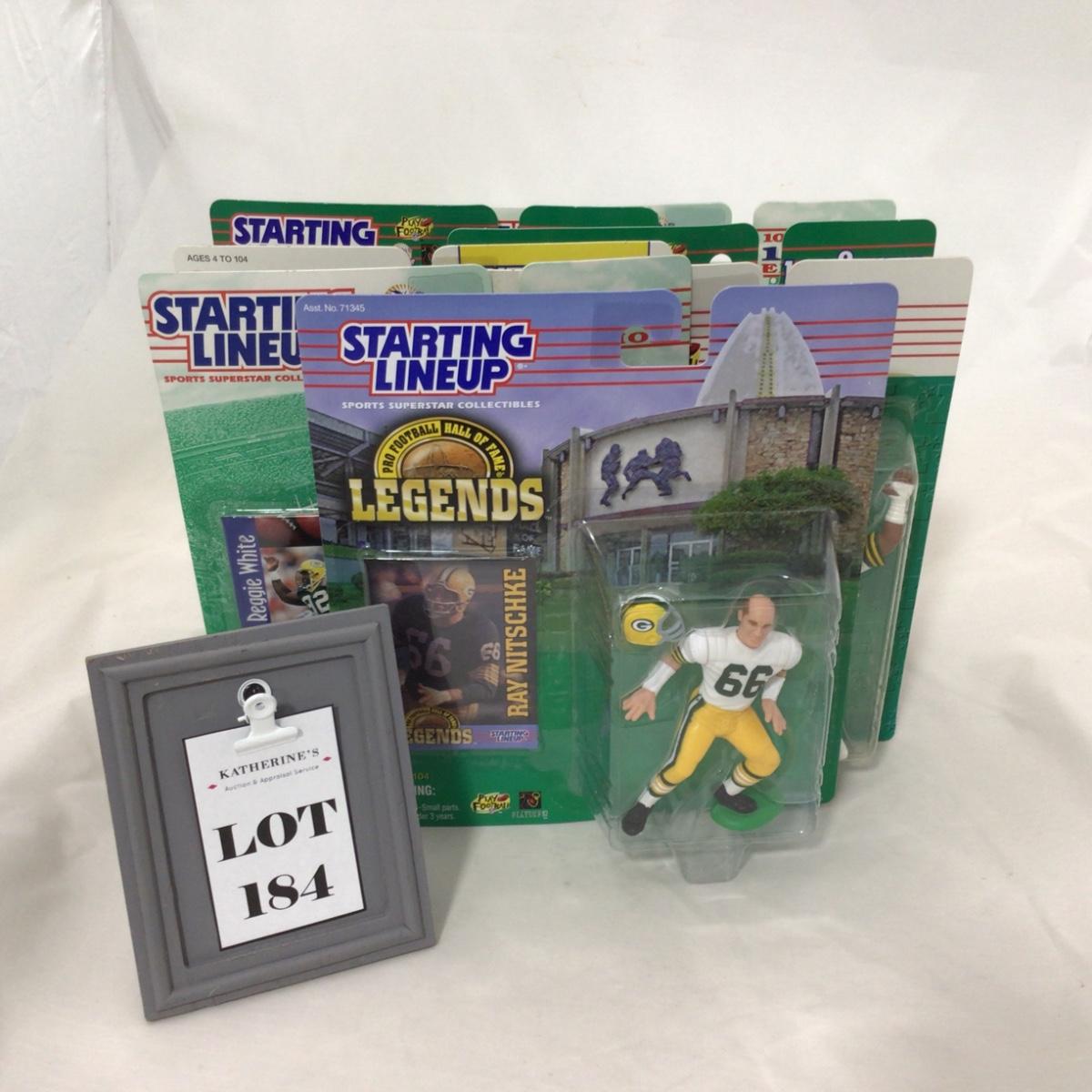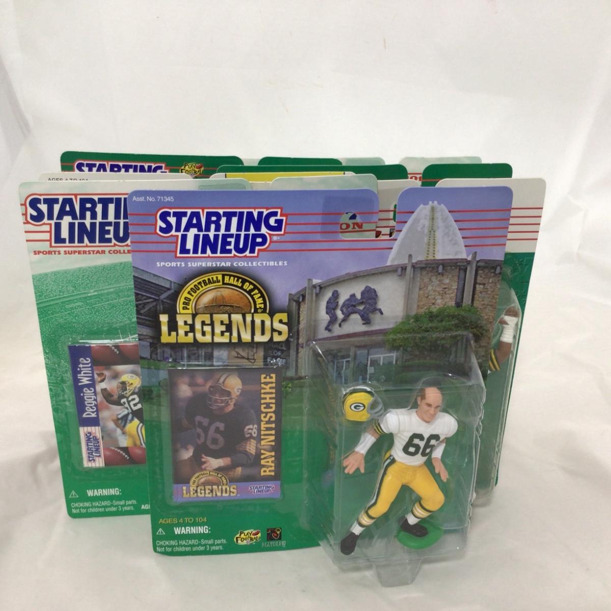 Seven Packers starting lineup figures. Please see photos for details and condition. ::: Shipping is available on this lot. If you require shipping you must let us know at the close of the auction. We will coordinate with you after the item has been won. Shipping fees will include insurance up to or exceeding the value of all items being mailed. If you have any questions regarding this lot please contact the auctioneer either via this website, by direct email or by phone. PICK UP TIMES and other important information can be found in the TERMS and DESCRIPTION of the auction. Please take a look for pertinent information. Thanks!