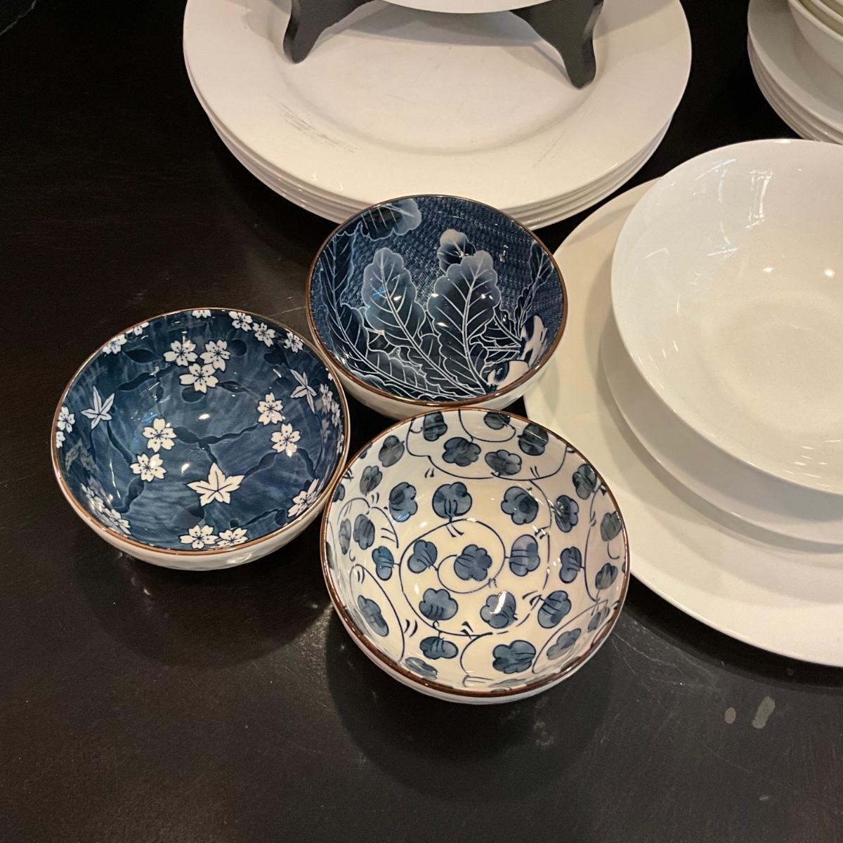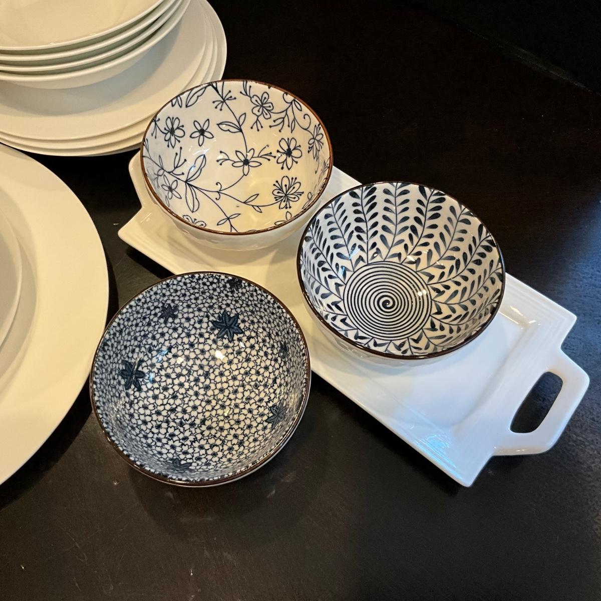 184 Red Vanilla Bone China Set with 6 Blue and White Decorative Bowls