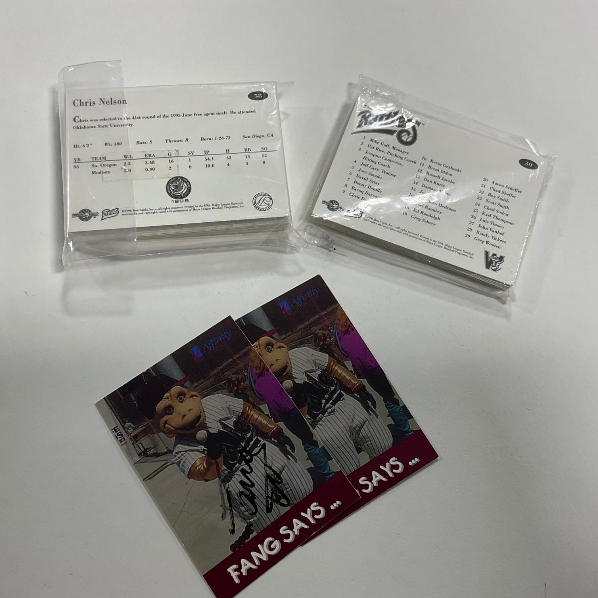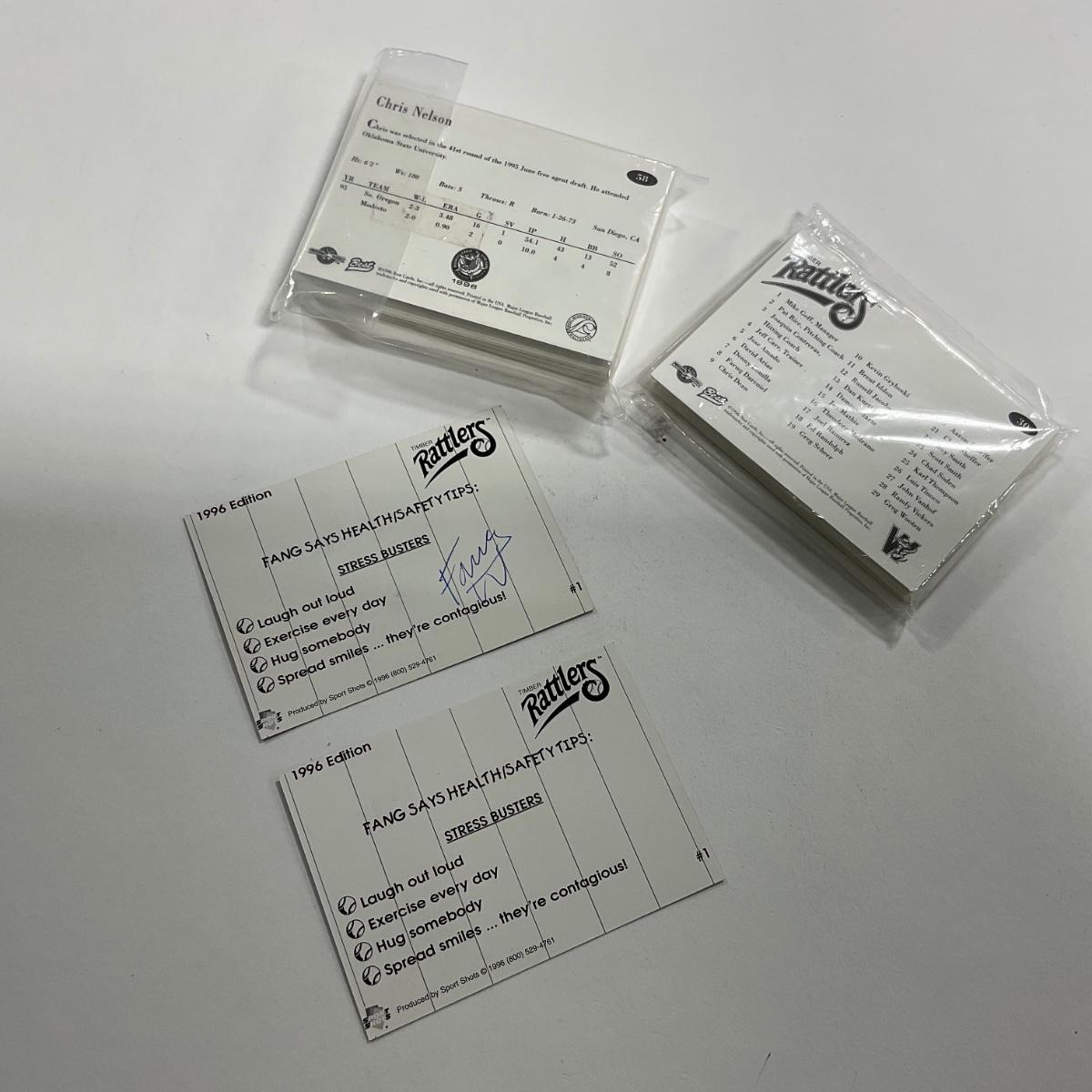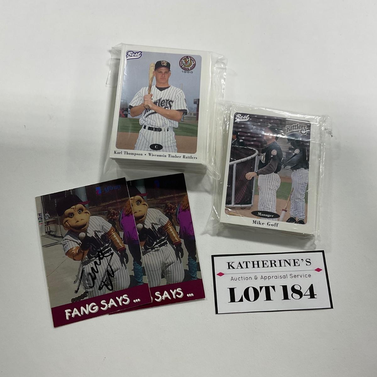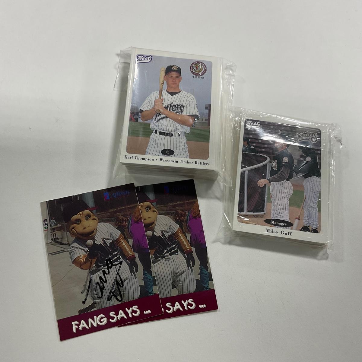 Signed Fang Mascot Timber rattlers baseball card. Many Timber rattlers baseball cards. Please see photos for details and condition. ::: Shipping is available on this lot. If you require shipping you must let us know at the close of the auction. We will coordinate with you after the item has been won. Shipping fees will include insurance up to or exceeding the value of all items being mailed. If you have any questions regarding this lot please contact the auctioneer either via this website, by direct email or by phone. PICK UP TIMES and other important information can be found in the TERMS and DESCRIPTION of the auction. Please take a look for pertinent information. Thanks!