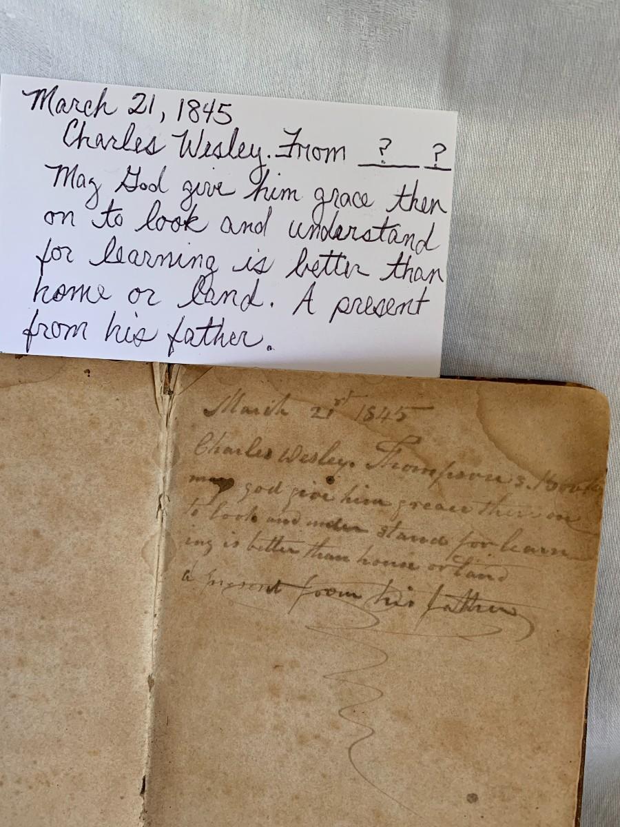 Obviously not the Charles Wesley that was the leader of the Methodist movement, but very possible a descendant, thereof. The notation depicts the truth that the Father knew and hoped his son would surely possess. Just lovely.