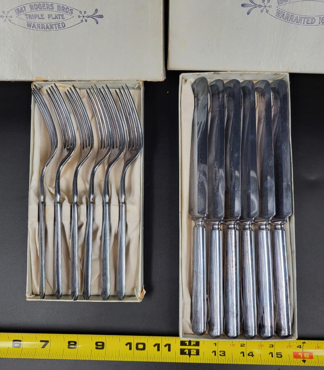 1847 ROGER CO TRIPLE PLATE BOXED SILVER PLATE KNIFE & FORK SETS
