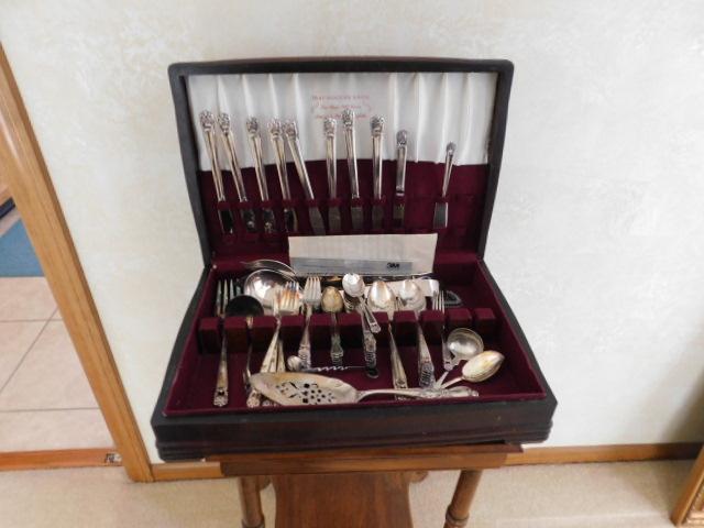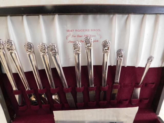 1847 Rogers Bros. Stainless Silverplate Flatware Set in Cabinet