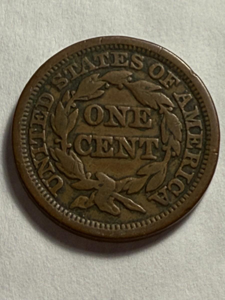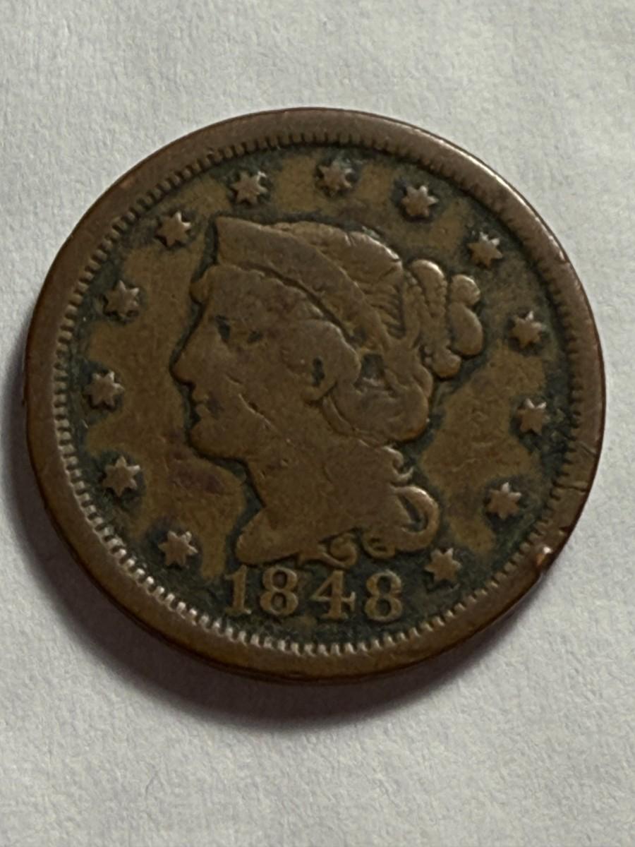 1848 CIRCULATED CONDITION BRAIDED HAIR LARGE CENT COIN-3 AS PICTURED.