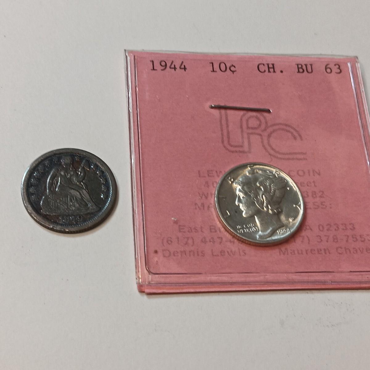 1849-O SILVER DIME & 1944 MERCURY SILVER DIME