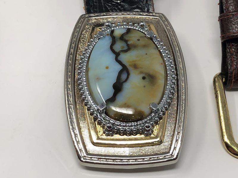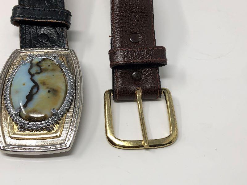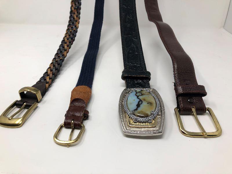 185: Assorted Belts Includes a Hand Made Polished Stone Buckle