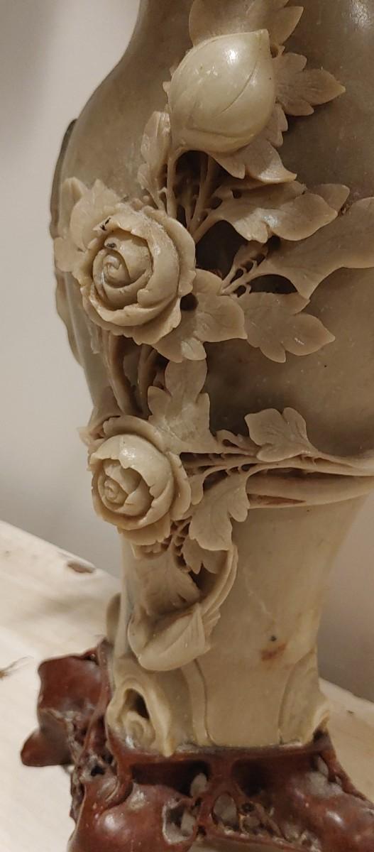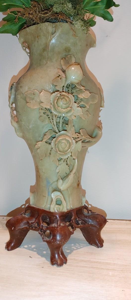 #186  Antique Oriental Carved Soap Stone Vase