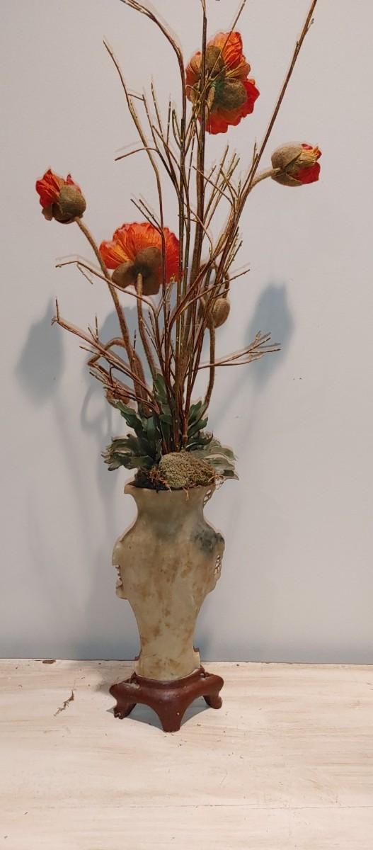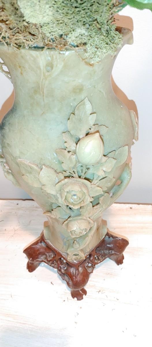 #186 Antique Oriental Carved Soap Stone Vase