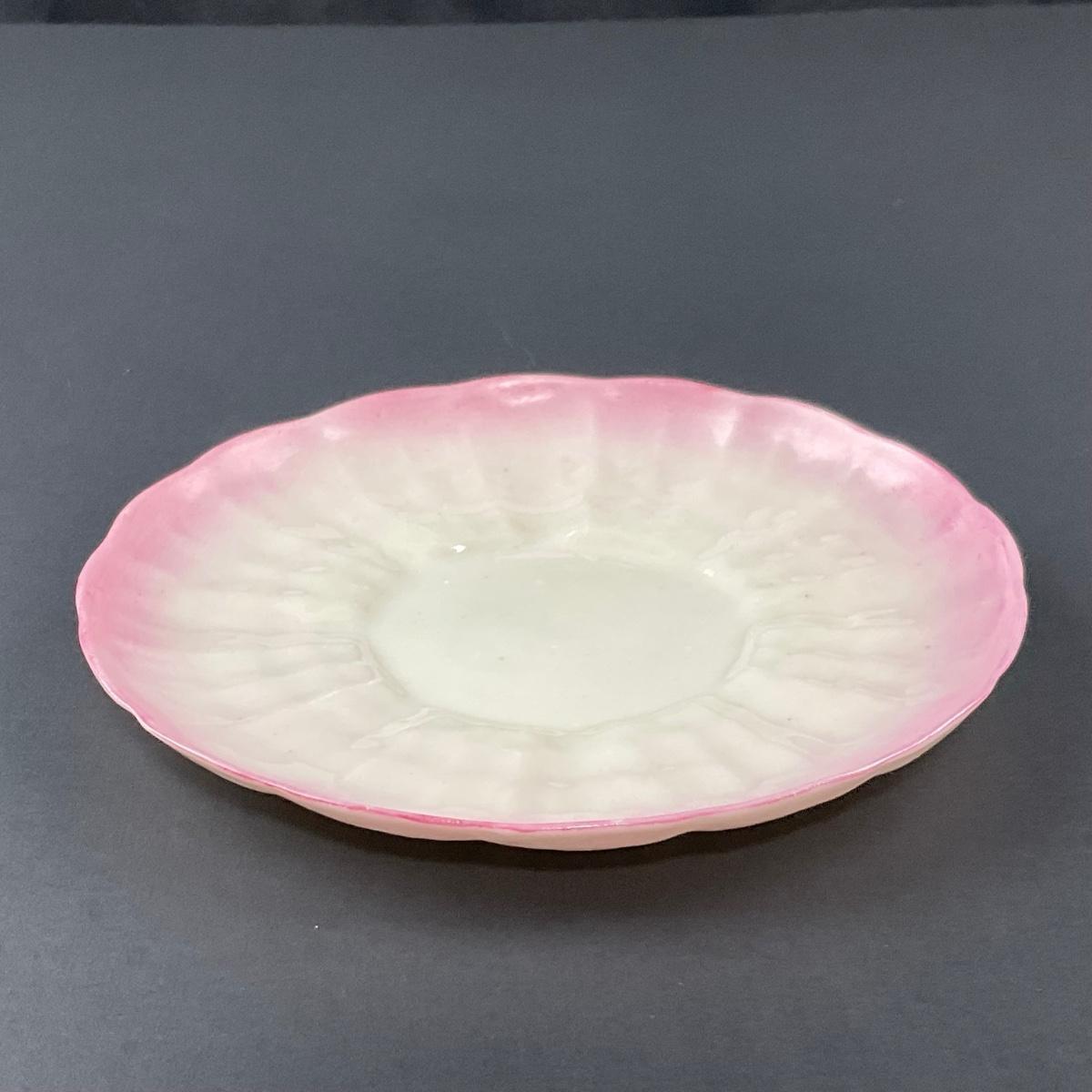 Two piece set of Belleek teacup and saucer. Tridacna shell pink pattern with 2nd mark (1891-1926). This piece has no damage, and appears to be in great shape with no visable chips, cracks, or broken pieces. Please see photos for details and condition. Any condition statement is given as a courtesy to a client, is an opinion, and should not be treated as a statement of fact. Reference to condition written, oral or within a condition report shall not be regarded as a full account of condition and may not include all defects, alterations, or restorations. Absence of a condition report does not imply a lot is flawless or lacking imperfections or damage. Katherine’s Auction & Appraisal Service shall have no responsibility for any error or omission. Returns shall not be accepted on the basis of condition. ::: Shipping is available on this lot. If you require shipping you must let us know at the close of the auction. We will coordinate with you after the item has been won. Shipping fees will include insurance up to or exceeding the value of all items being mailed. If you have any questions regarding this lot please contact the auctioneer either via this website, by direct email or by phone. PICK UP TIMES and other important information can be found in the TERMS and DESCRIPTION of the auction. Please take a look for pertinent information. Thanks!