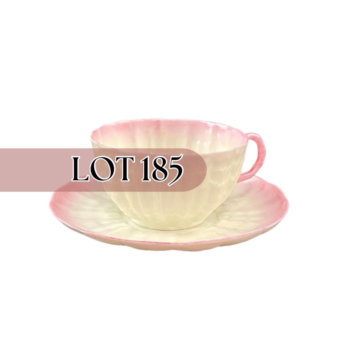 -185- BELLEEK | Teacup & Saucer | Tridacna Shell Pink Pattern | 2nd Mark