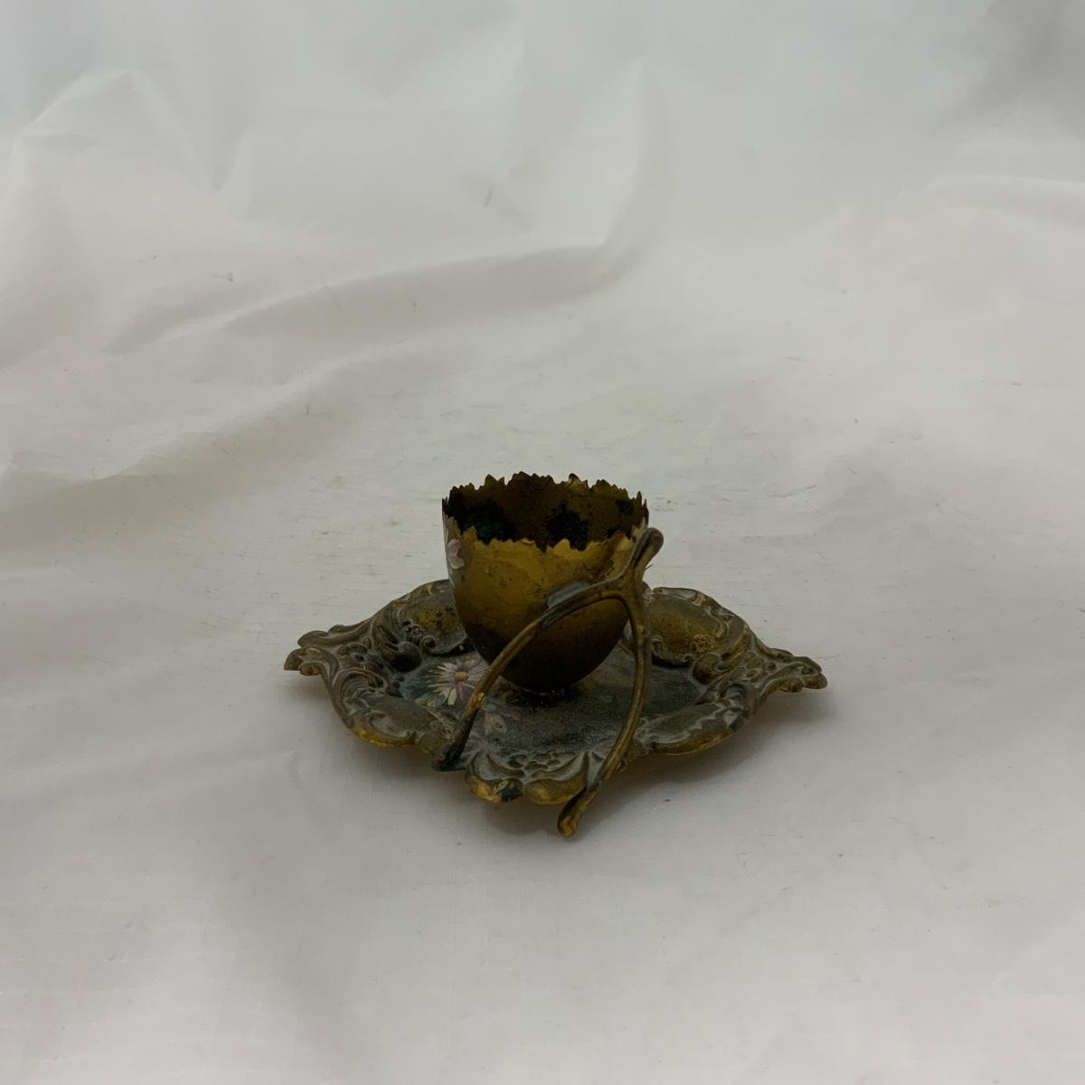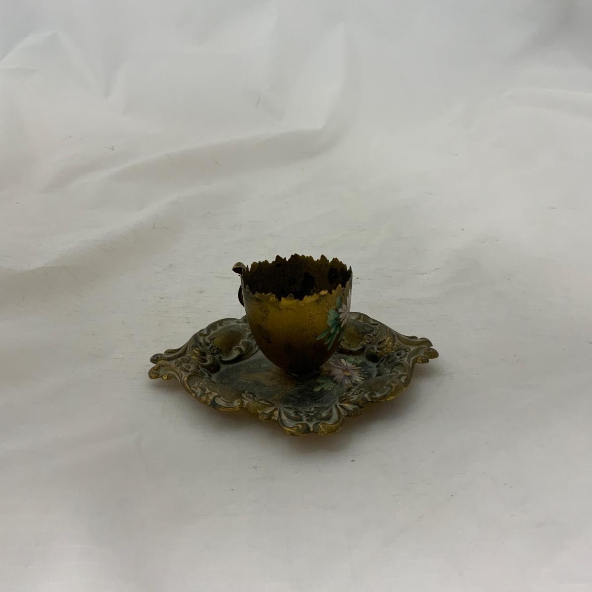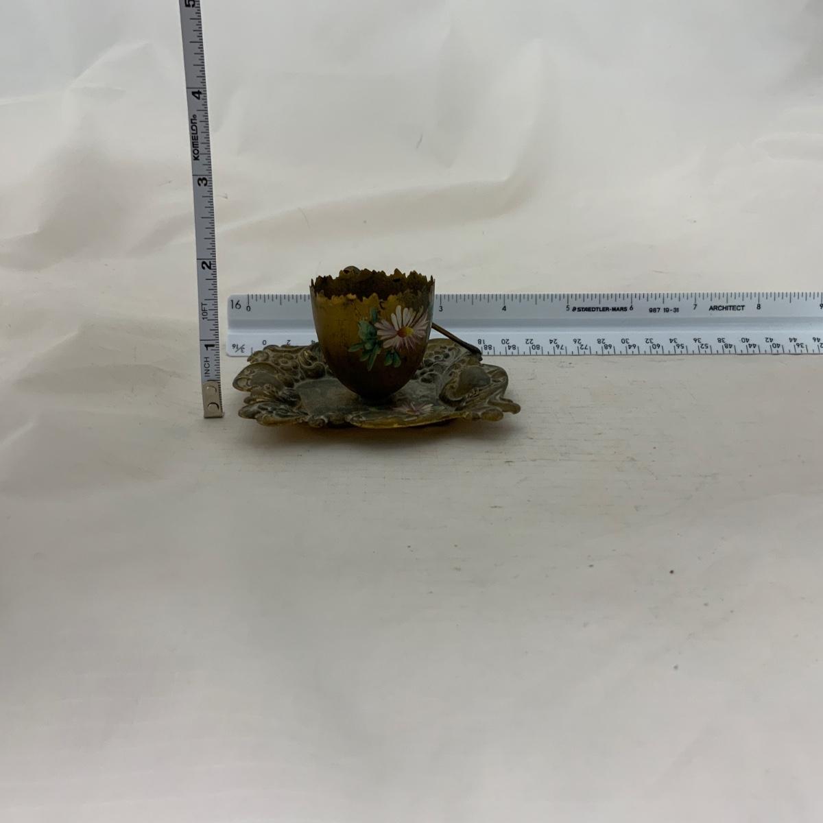 Attractive Brass Egg Toothpick holder. Hand Painted. Nice wishbone decoration on the side. Please see photos for details and condition. ::: Shipping is available on this lot. If you require shipping you must let us know at the close of the auction. We will coordinate with you after the item has been won. Shipping fees will include insurance up to or exceeding the value of all items being mailed. If you have any questions regarding this lot please contact the auctioneer either via this website, by direct email or by phone. PICK UP TIMES and other important information can be found in the TERMS and DESCRIPTION of the auction. Please take a look for pertinent information. Thanks!