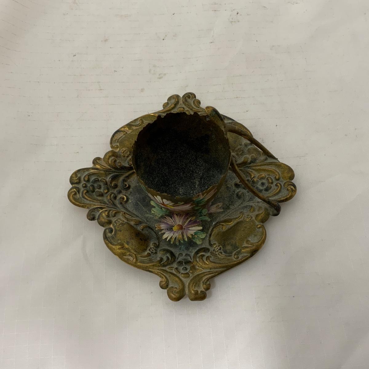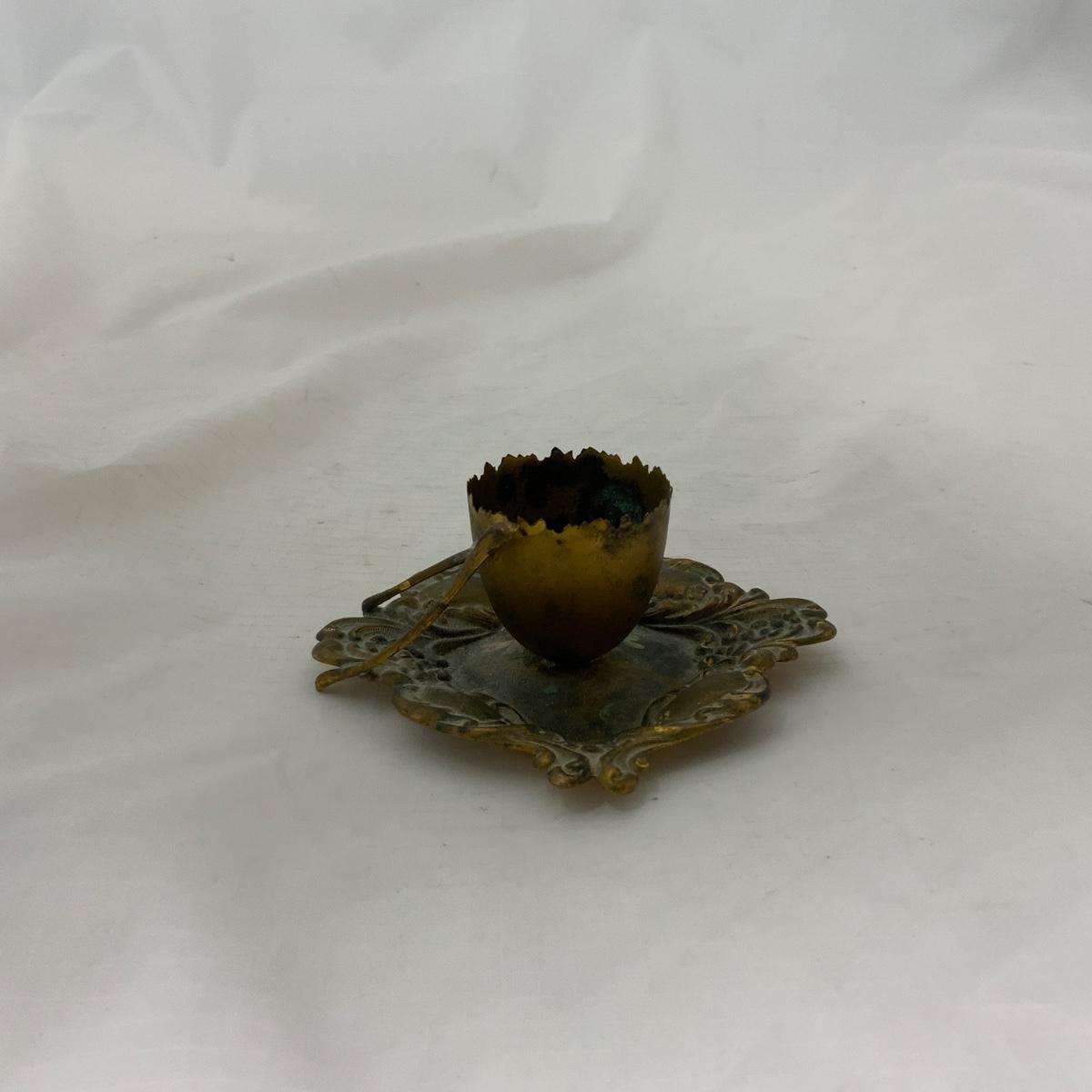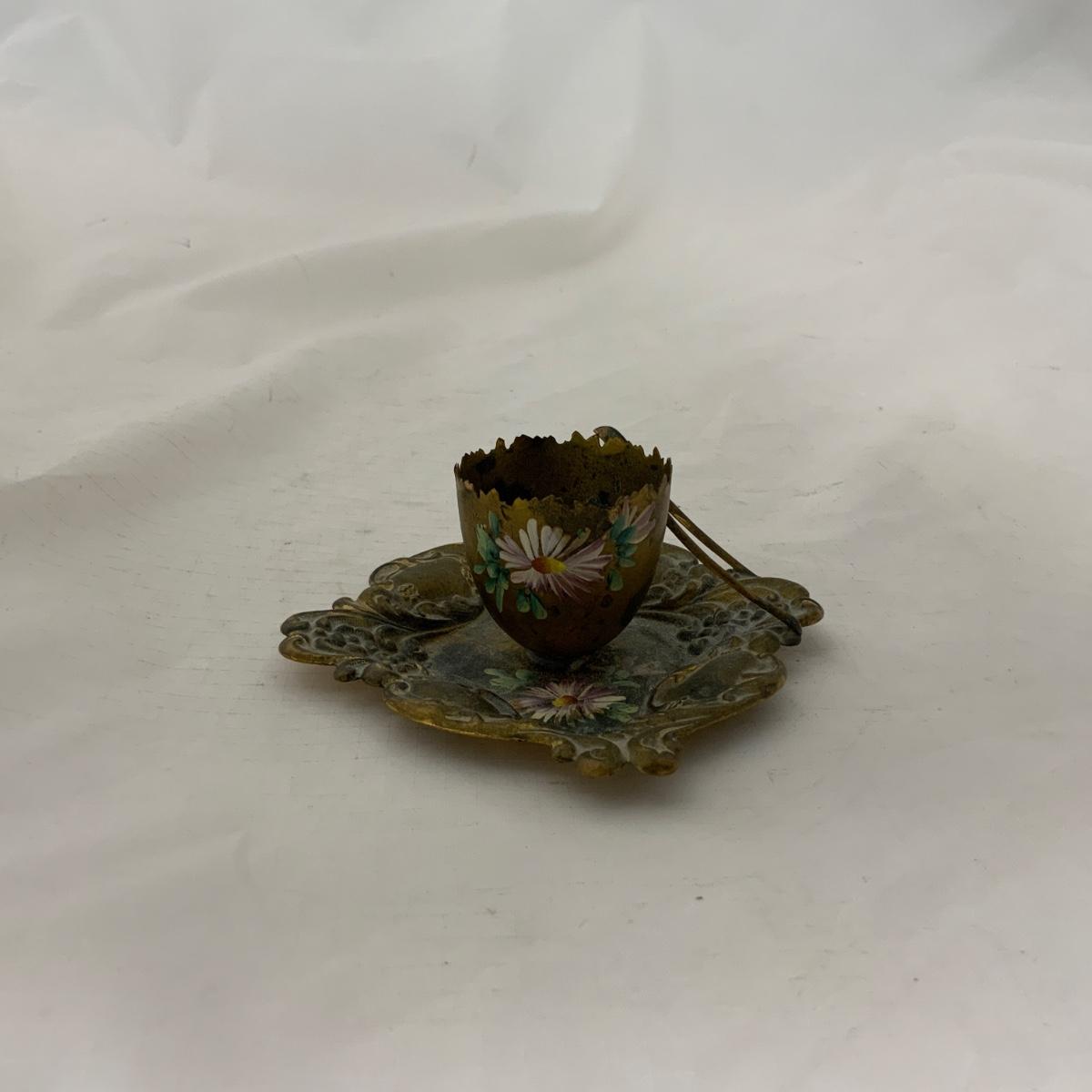 Attractive Brass Egg Toothpick holder. Hand Painted. Nice wishbone decoration on the side. Please see photos for details and condition. ::: Shipping is available on this lot. If you require shipping you must let us know at the close of the auction. We will coordinate with you after the item has been won. Shipping fees will include insurance up to or exceeding the value of all items being mailed. If you have any questions regarding this lot please contact the auctioneer either via this website, by direct email or by phone. PICK UP TIMES and other important information can be found in the TERMS and DESCRIPTION of the auction. Please take a look for pertinent information. Thanks!