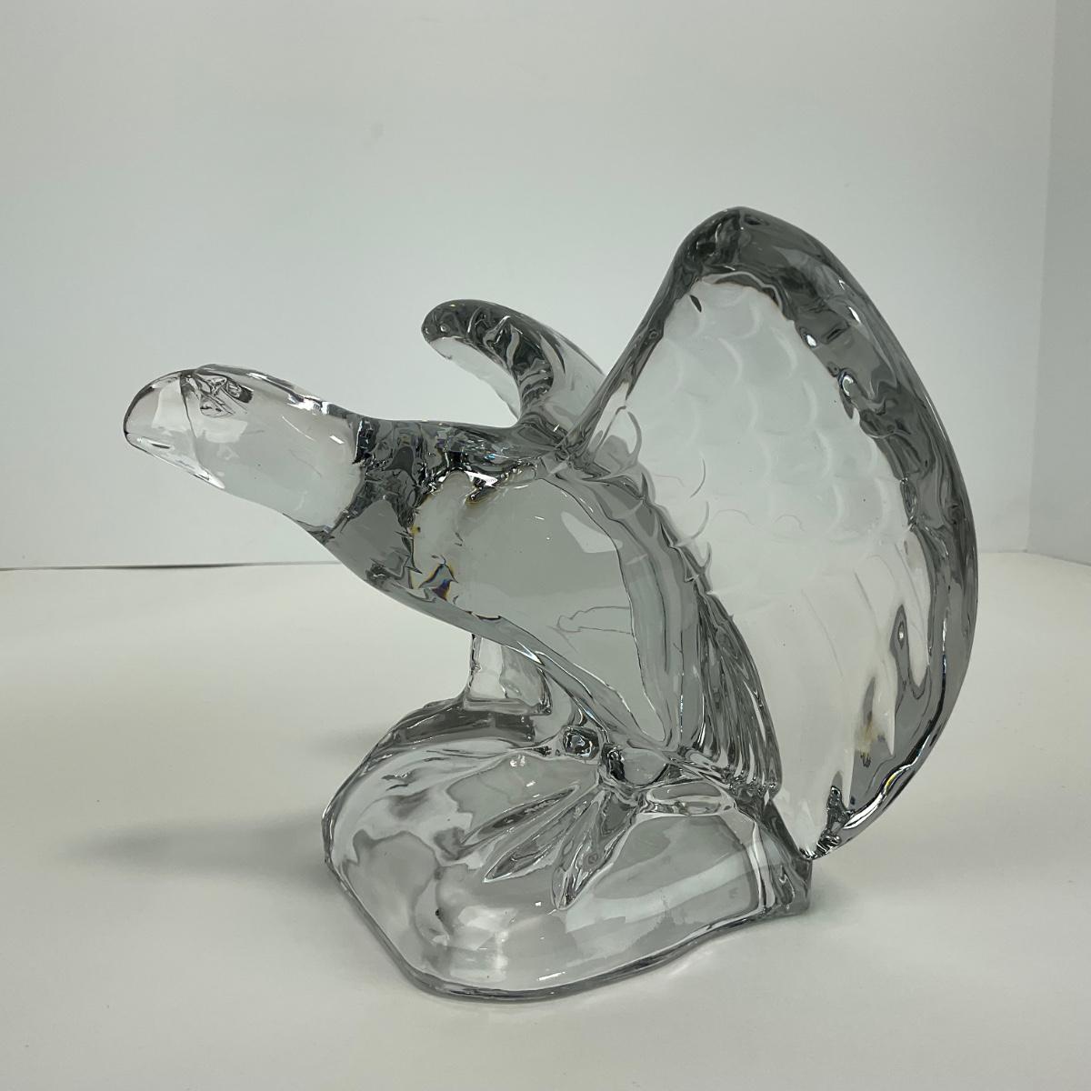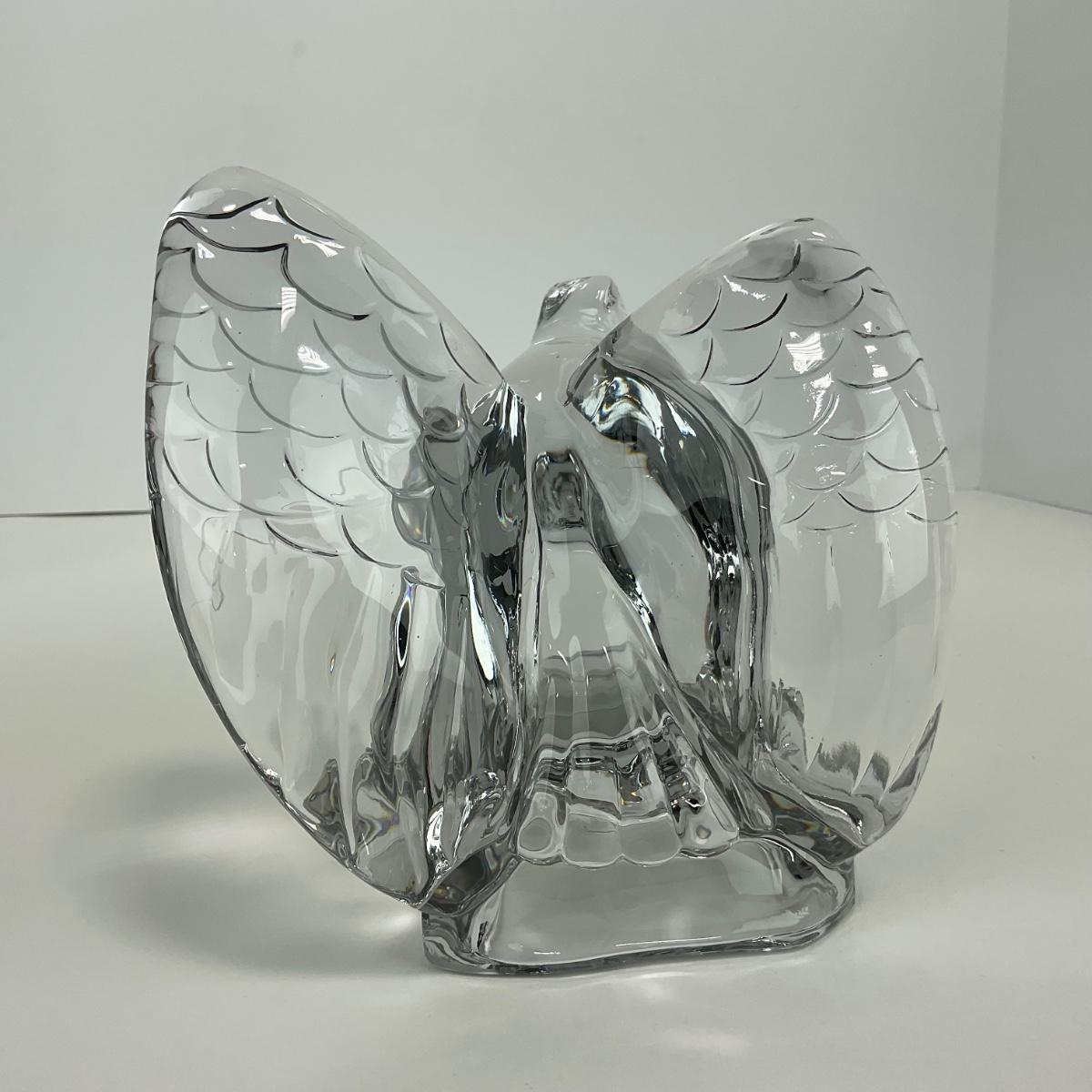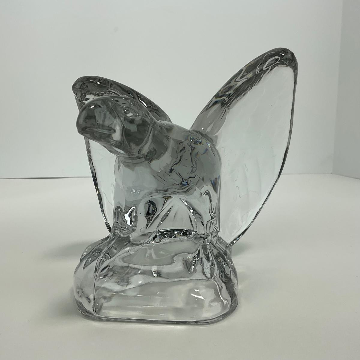 One Cambridge clear glass eagle bookend. 5 3/4 inches wide by 6 inches tall. This piece has no damage, and appears to be in great shape with no visable chips, cracks, or broken pieces. Please see photos for details and condition. Any condition statement is given as a courtesy to a client, is an opinion, and should not be treated as a statement of fact. Reference to condition written, oral or within a condition report shall not be regarded as a full account of condition and may not include all defects, alterations, or restorations. Absence of a condition report does not imply a lot is flawless or lacking imperfections or damage. Katherine’s Auction & Appraisal Service shall have no responsibility for any error or omission. Returns shall not be accepted on the basis of condition. ::: Shipping is available on this lot. If you require shipping you must let us know at the close of the auction. We will coordinate with you after the item has been won. Shipping fees will include insurance up to or exceeding the value of all items being mailed. If you have any questions regarding this lot please contact the auctioneer either via this website, by direct email or by phone. PICK UP TIMES and other important information can be found in the TERMS and DESCRIPTION of the auction. Please take a look for pertinent information. Thanks!