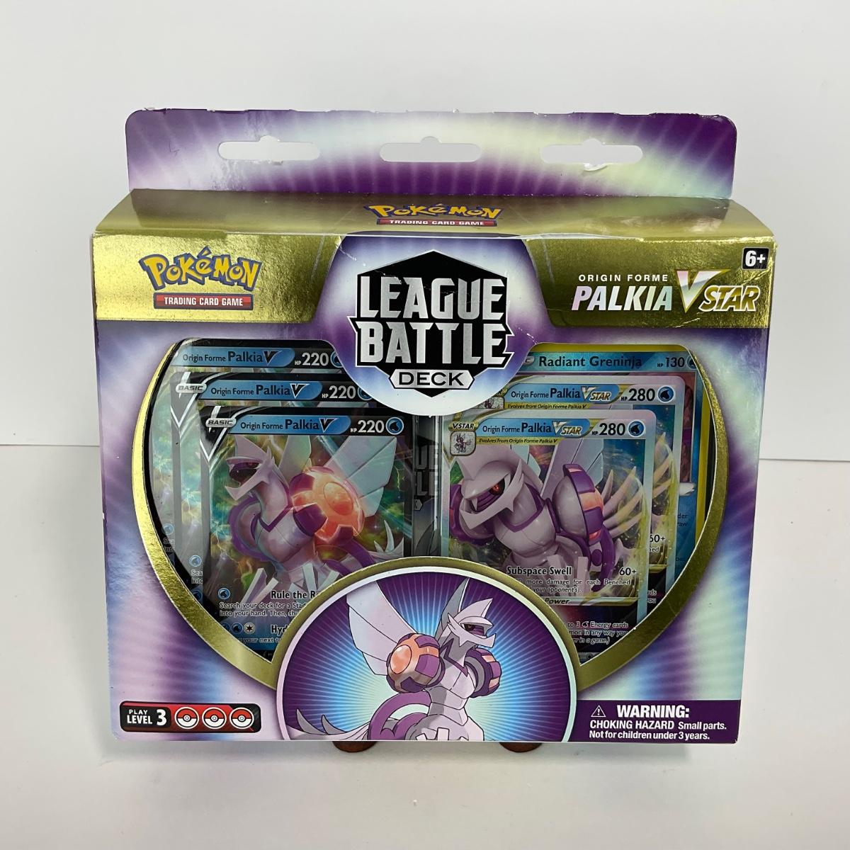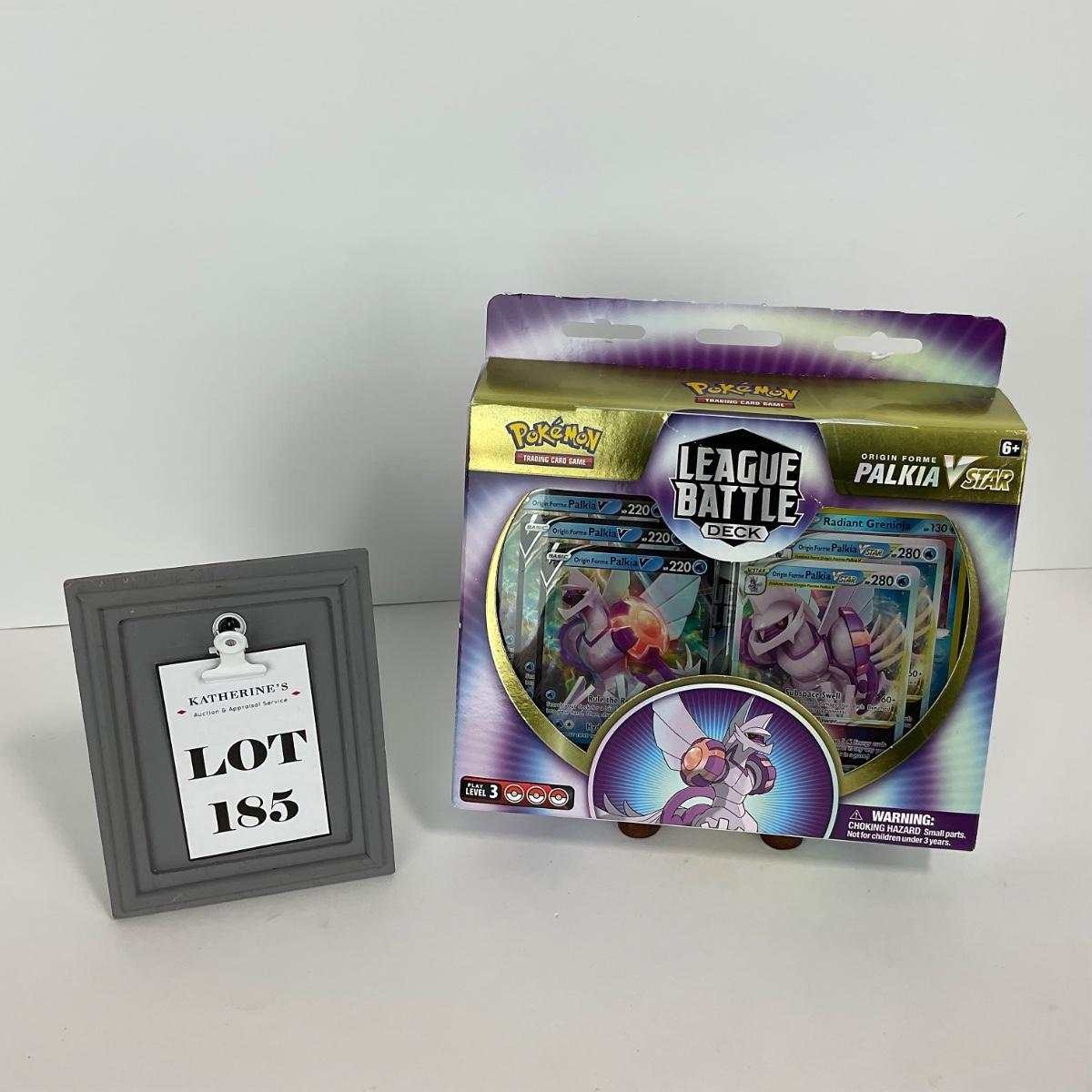 One box of league battle deck palkia v star cards, box has some minor damage. Please see photos for details and condition. ::: Shipping is available on this lot. If you require shipping you must let us know at the close of the auction. We will coordinate with you after the item has been won. Shipping fees will include insurance up to or exceeding the value of all items being mailed. If you have any questions regarding this lot please contact the auctioneer either via this website, by direct email or by phone. PICK UP TIMES and other important information can be found in the TERMS and DESCRIPTION of the auction. Please take a look for pertinent information. Thanks!