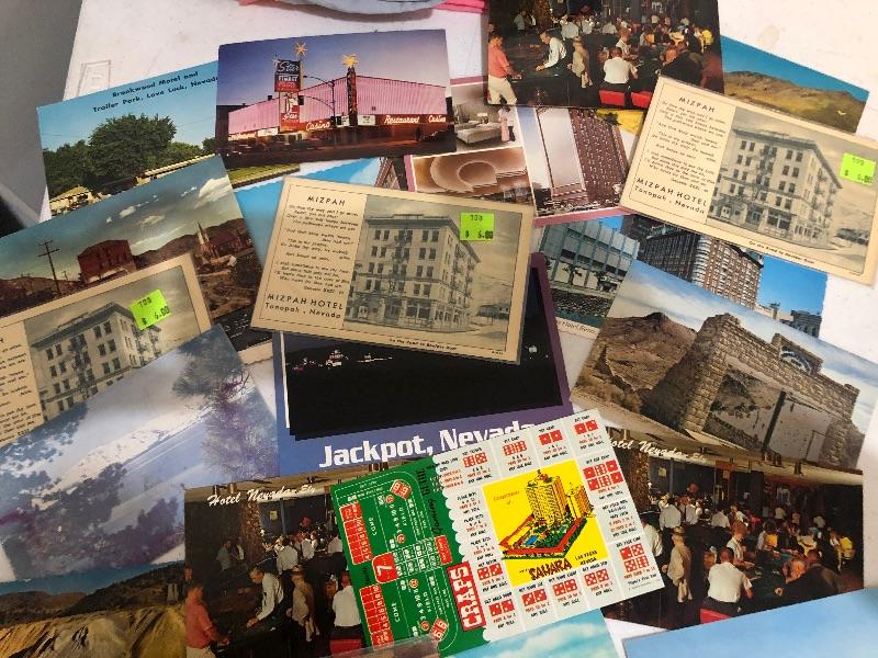 Bundle includes various landmarks in Nevada including Reno Las Vegas Lily, Tonopah bundle includes lucky 21 all postcards are blank on the back. This is an ONSITE Auction all items will need to be picked up on location. Please see auction description for pick up procedures