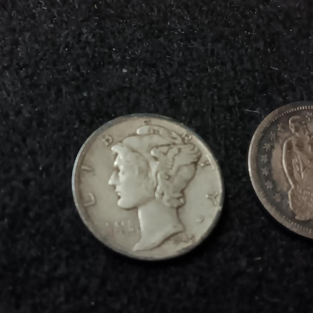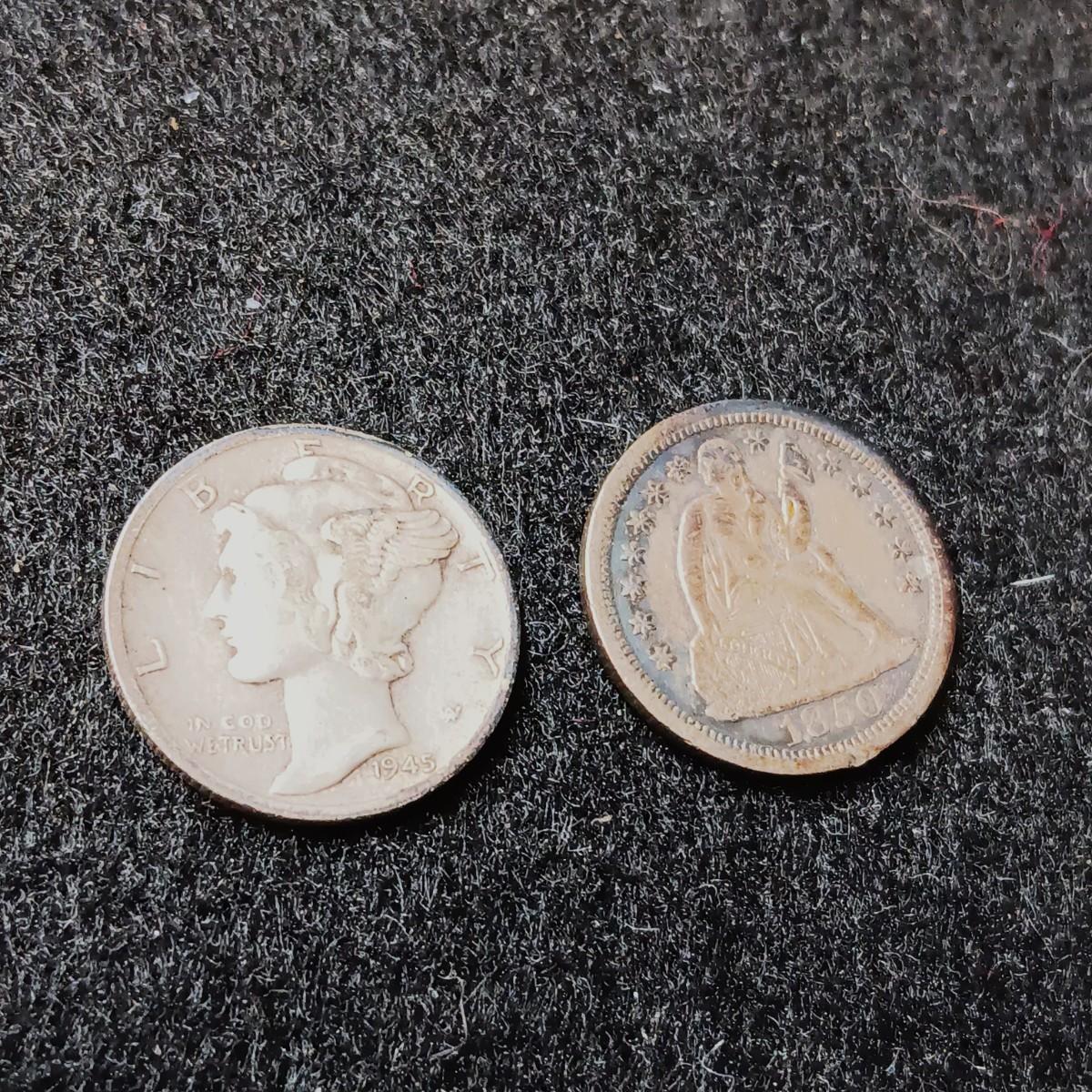 1850 SEATED LIBERTY DIME AND 1945 MERCURY DIME