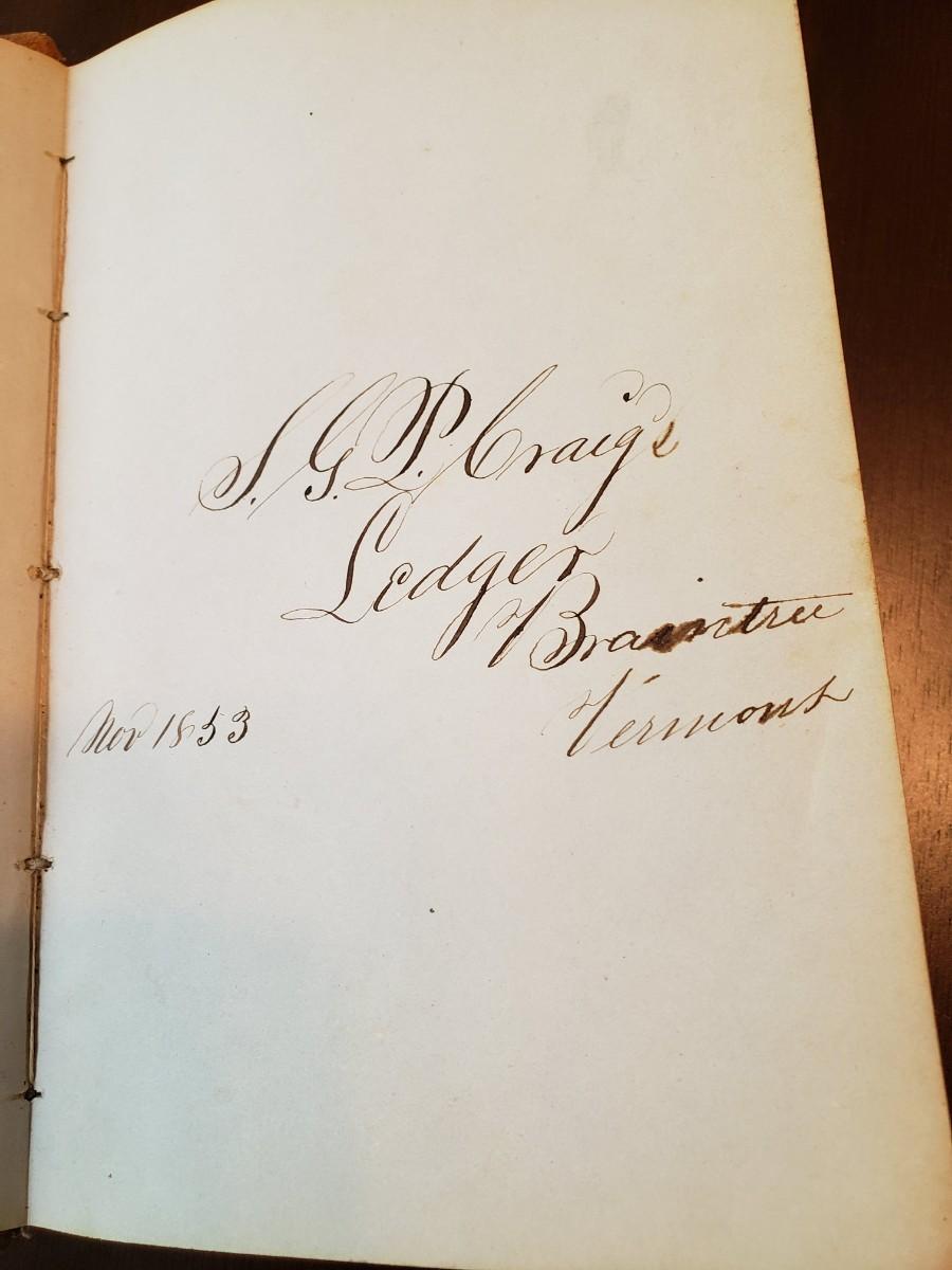 Antique SGP Craig's cash ledger dated November 1853. Braintree, Vermont. Good condition.