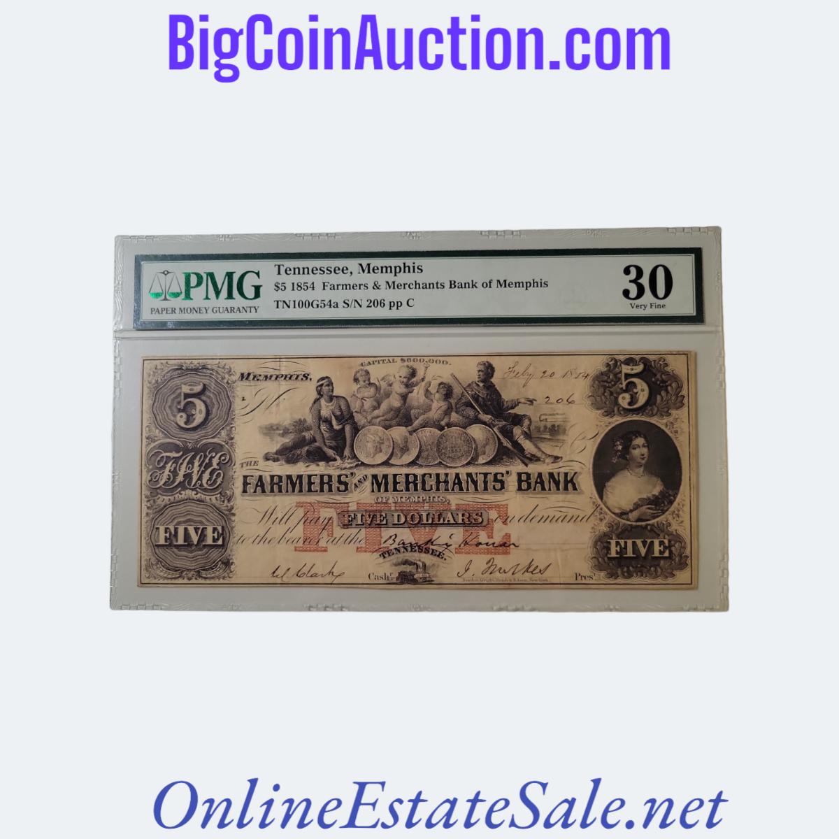 1854 TENNESSEE, MEMPHIS FARMERS $5 NOTE
