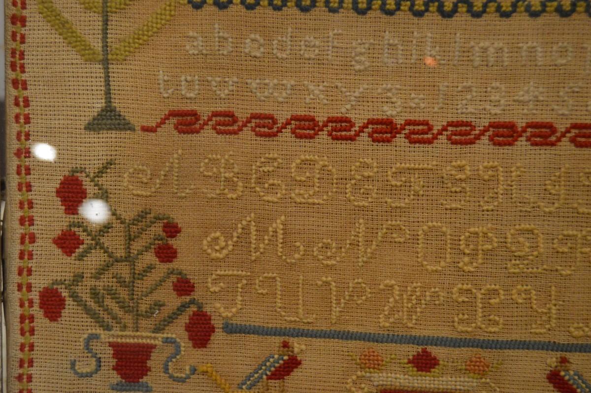 Well, we have come a long way in 166 years! Most 13 year olds today wouldn't know how to thread a needle to sew a button on let alone create a treasure of needle point work like this relic! Expected fading and brown spots due to age.