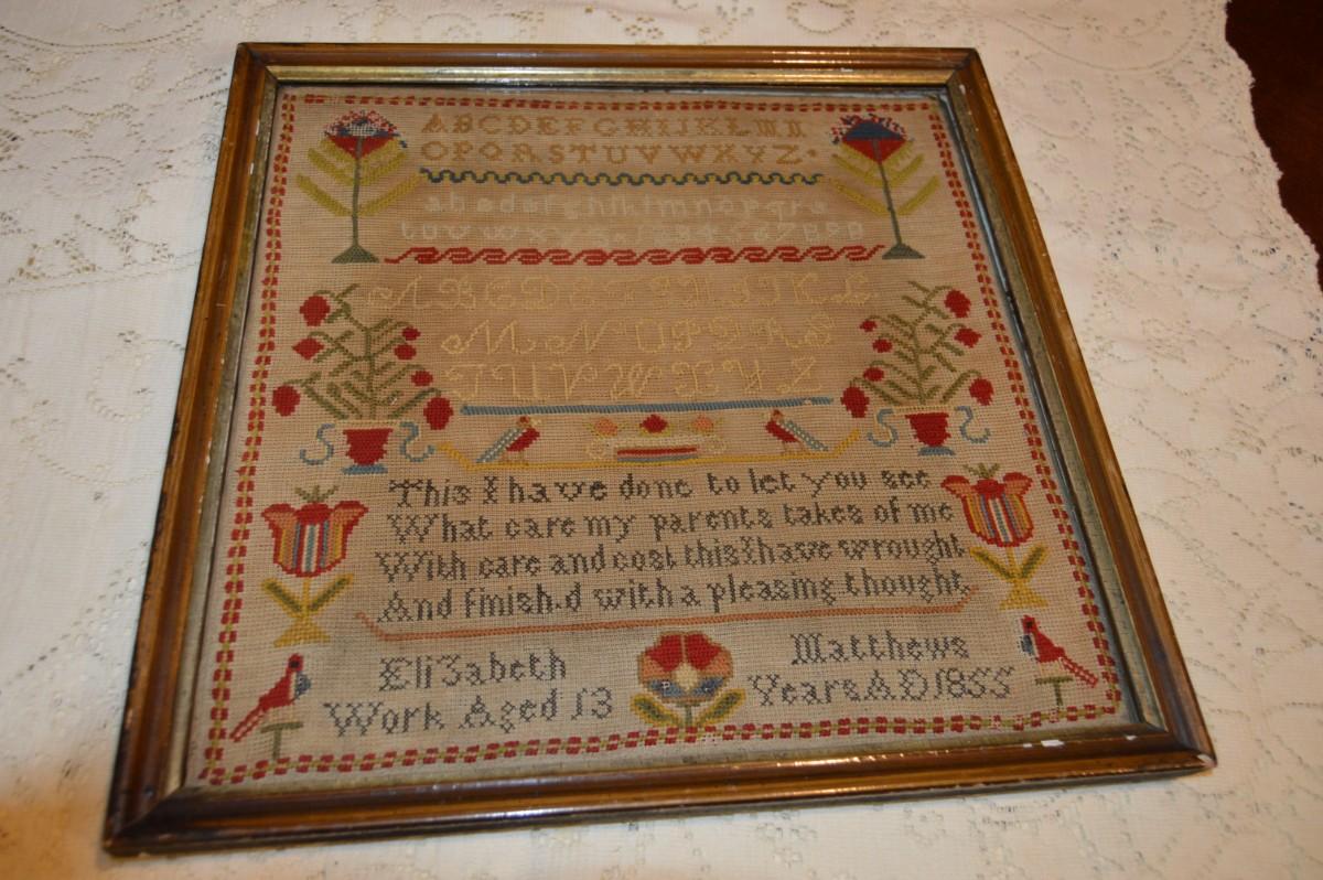 1855 Antique Sampler by  13 year old Elizabeth Matthews