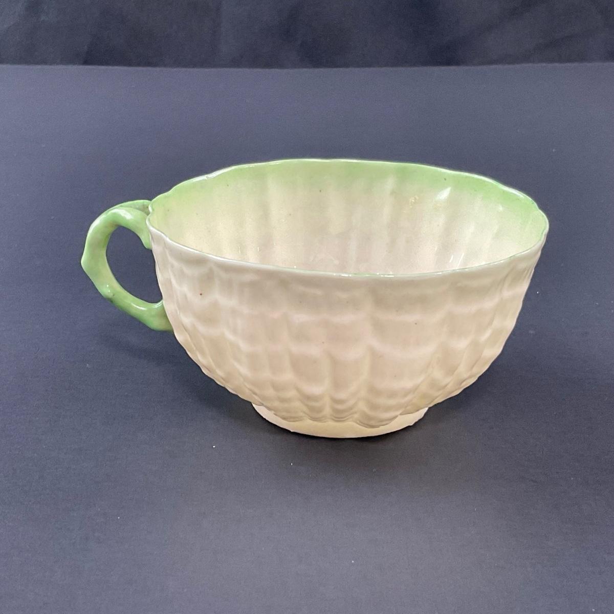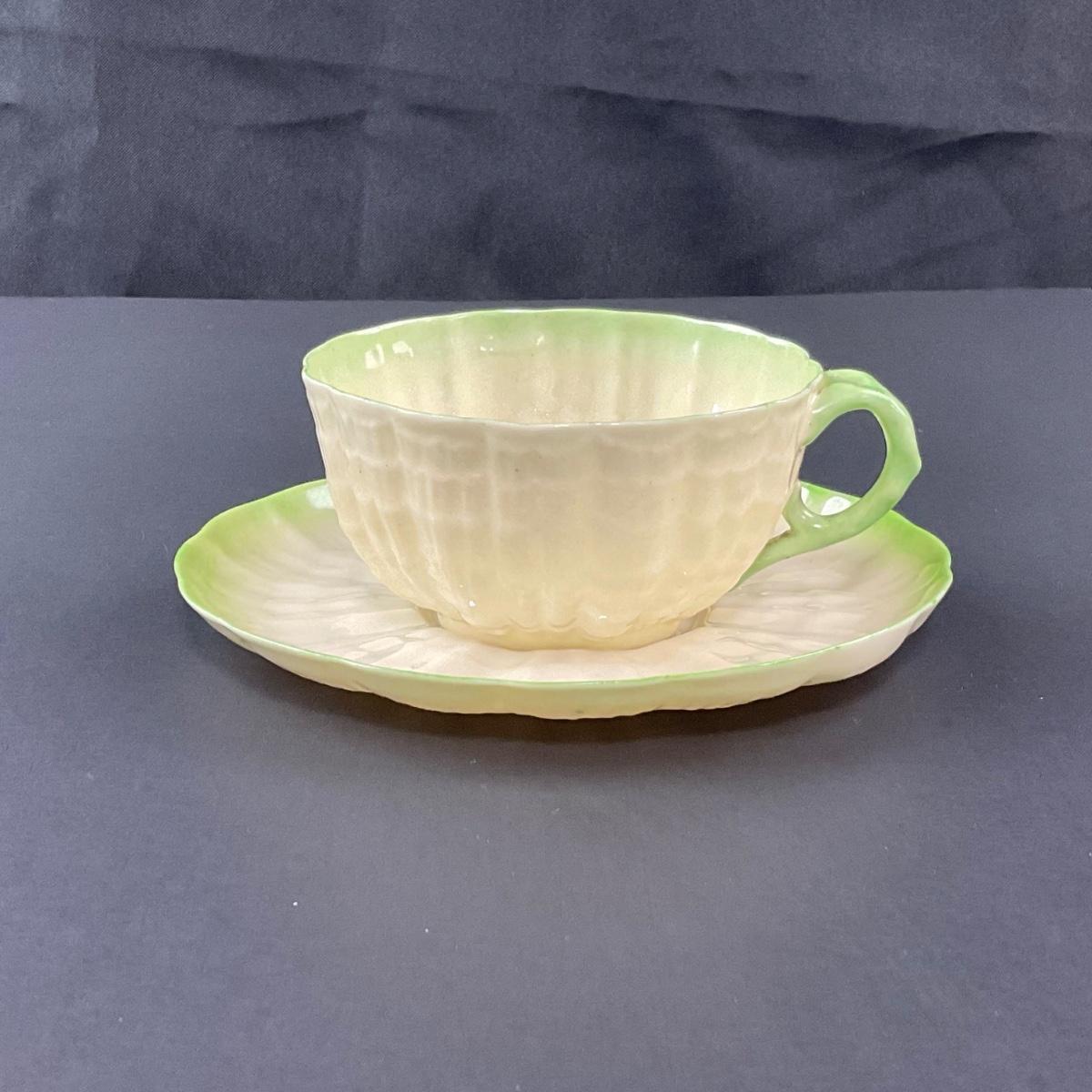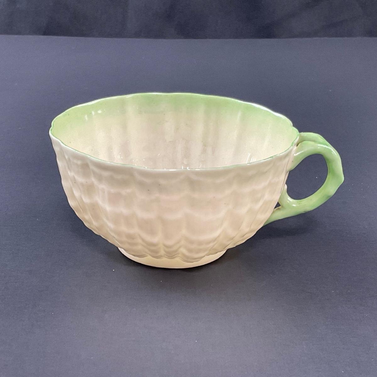 -186- BELLEEK | Teacup & Saucer | Tridacna Shell Green Pattern | 2nd Mark