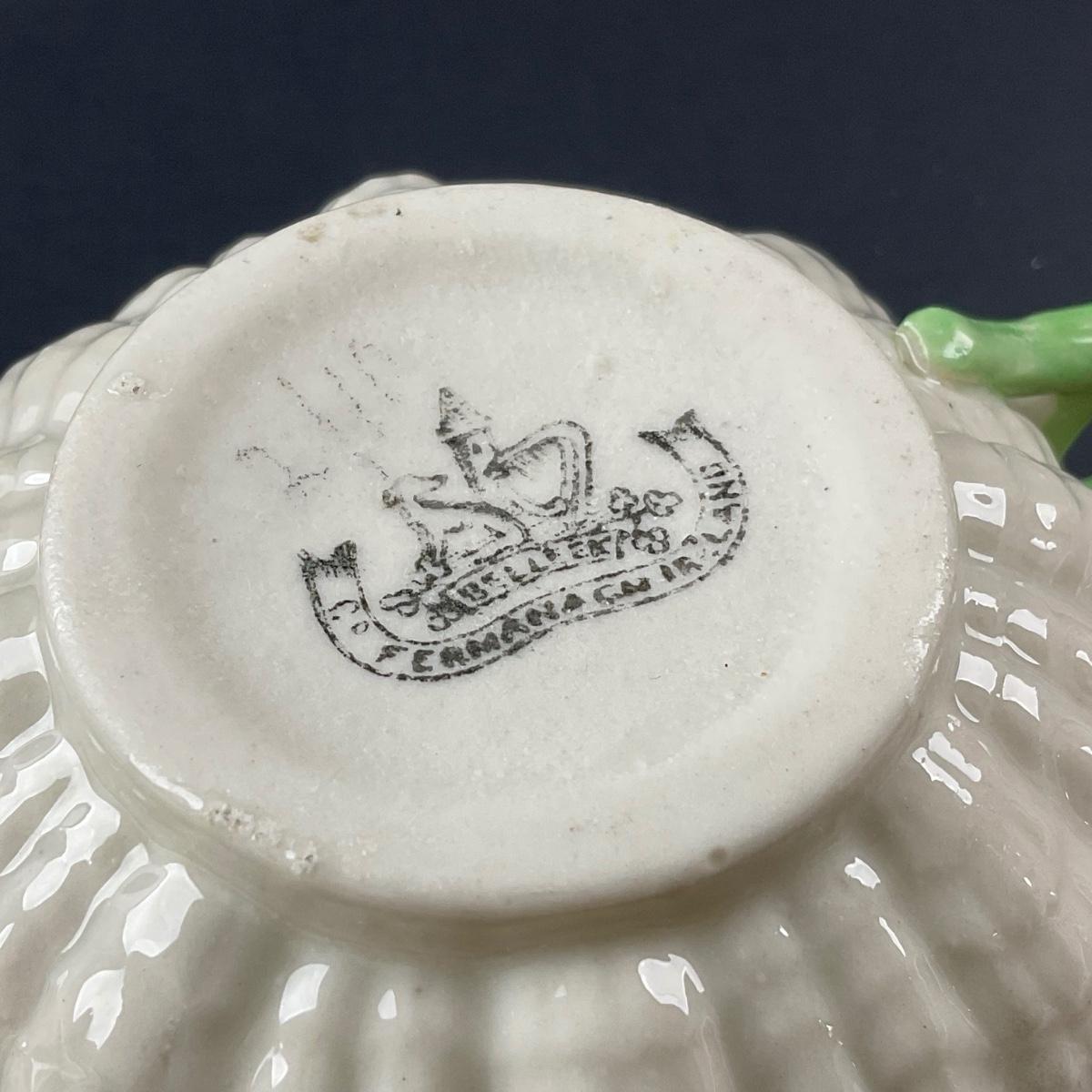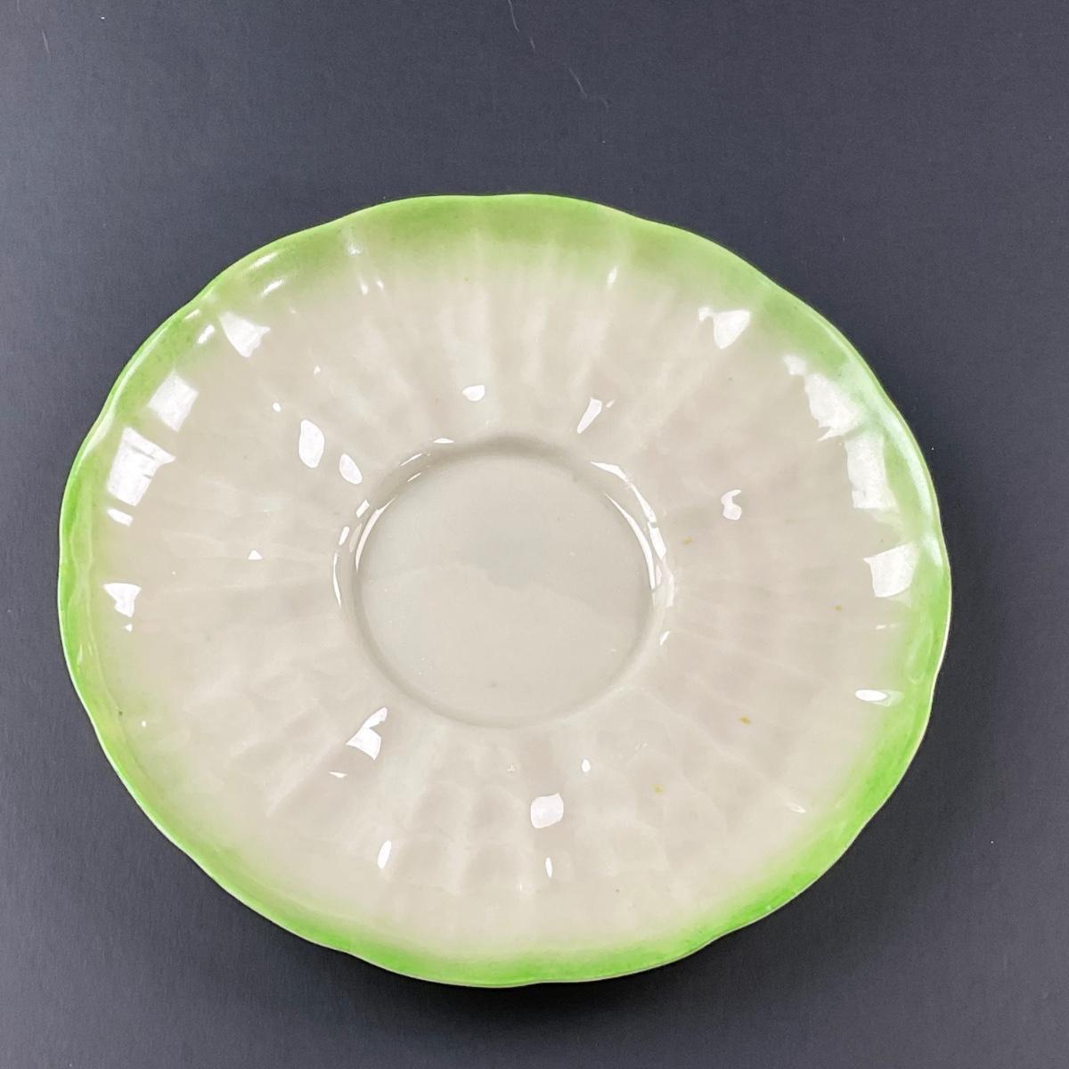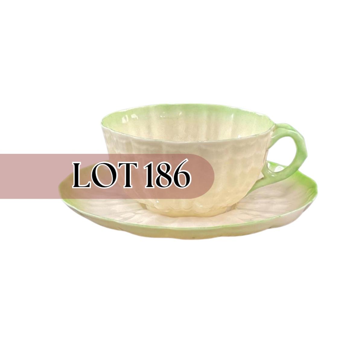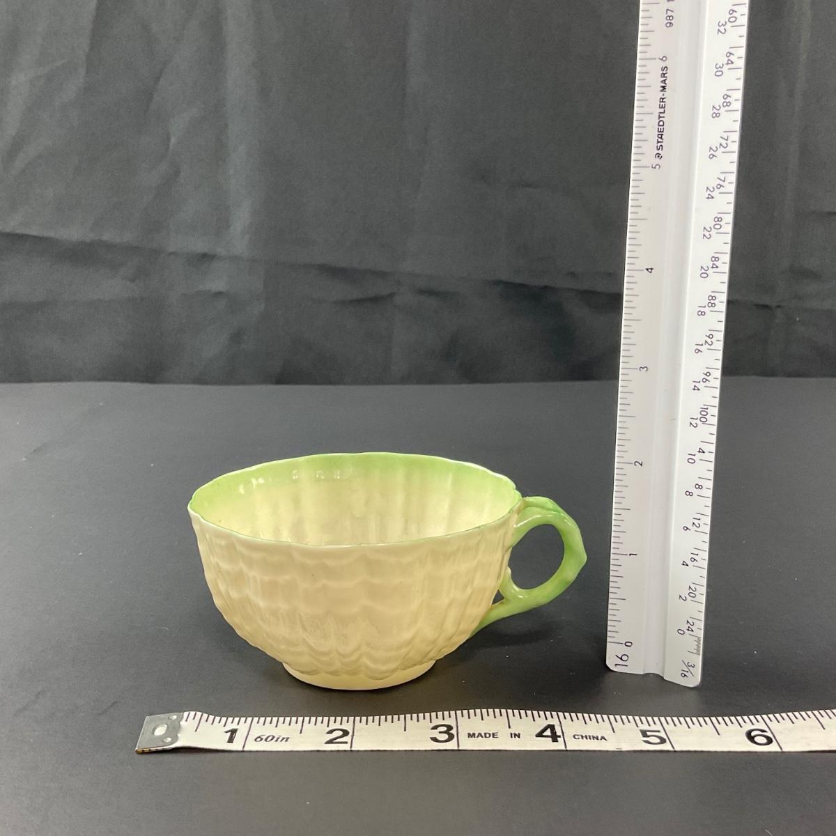 -186- BELLEEK | Teacup & Saucer | Tridacna Shell Green Pattern | 2nd Mark
