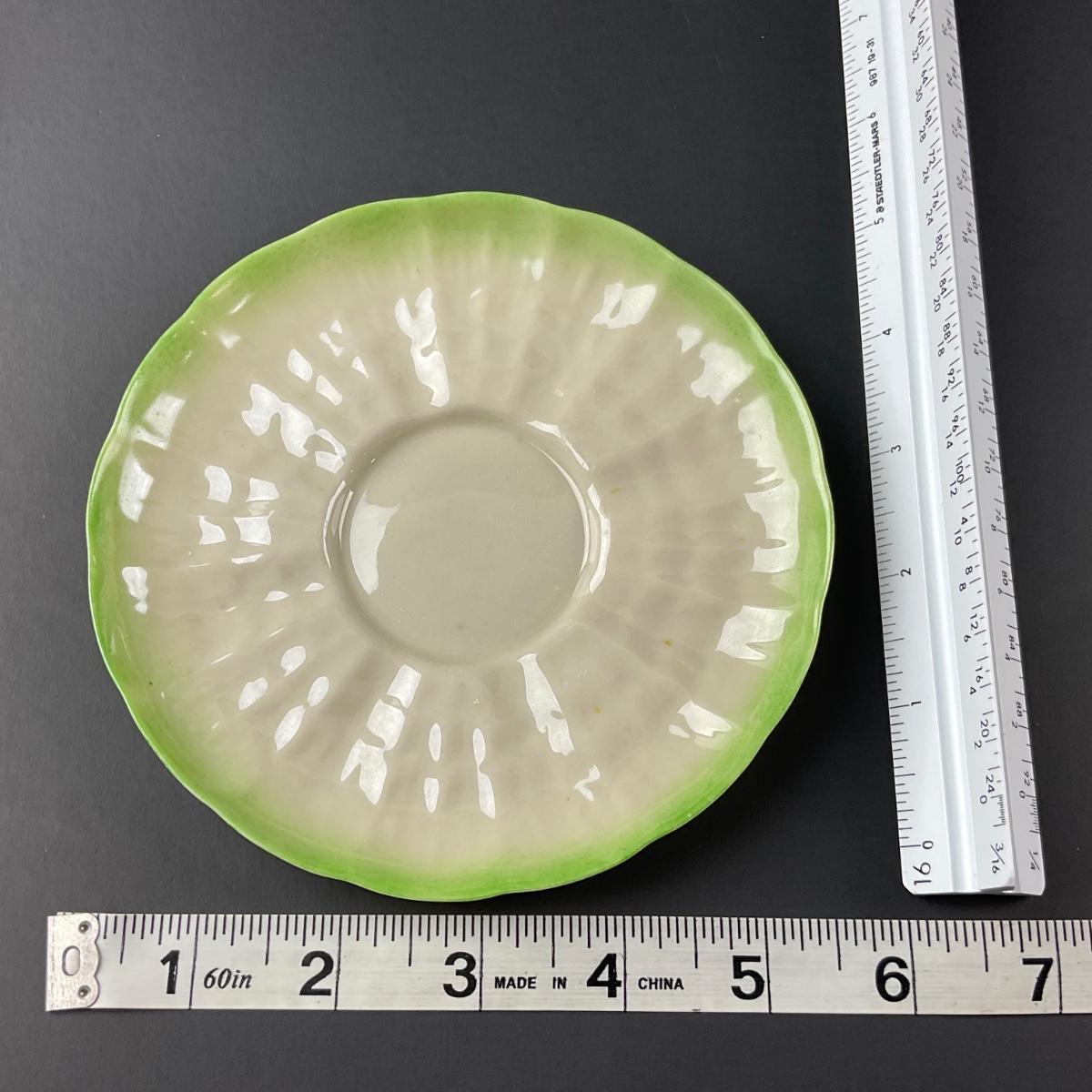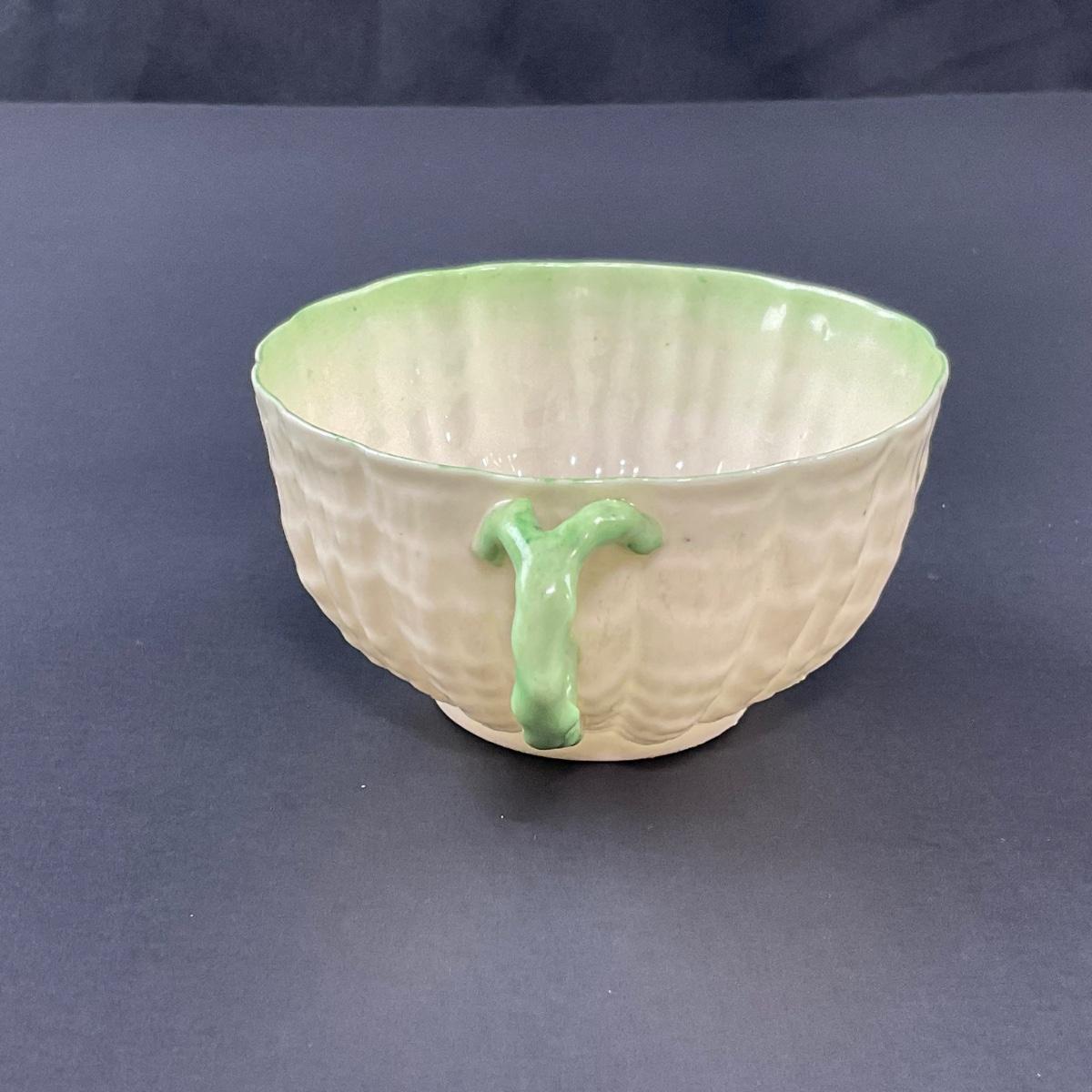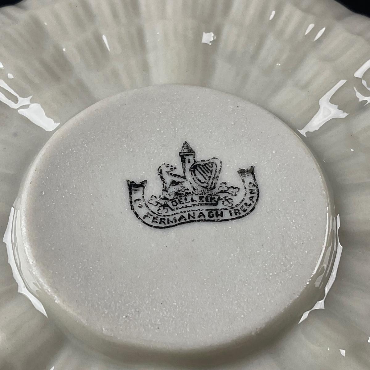 Two piece set of Belleek teacup and saucer. Tridacna shell green pattern with 2nd mark (1891-1926). This piece has no damage, and appears to be in great shape with no visable chips, cracks, or broken pieces. Please see photos for details and condition. Any condition statement is given as a courtesy to a client, is an opinion, and should not be treated as a statement of fact. Reference to condition written, oral or within a condition report shall not be regarded as a full account of condition and may not include all defects, alterations, or restorations. Absence of a condition report does not imply a lot is flawless or lacking imperfections or damage. Katherine’s Auction & Appraisal Service shall have no responsibility for any error or omission. Returns shall not be accepted on the basis of condition. ::: Shipping is available on this lot. If you require shipping you must let us know at the close of the auction. We will coordinate with you after the item has been won. Shipping fees will include insurance up to or exceeding the value of all items being mailed. If you have any questions regarding this lot please contact the auctioneer either via this website, by direct email or by phone. PICK UP TIMES and other important information can be found in the TERMS and DESCRIPTION of the auction. Please take a look for pertinent information. Thanks!
