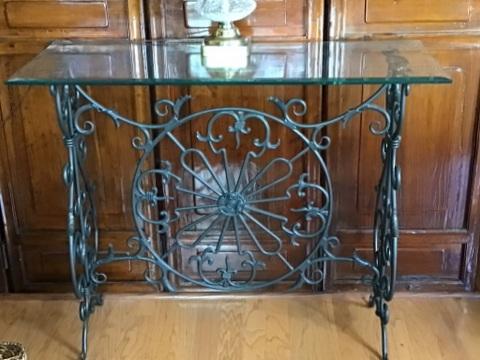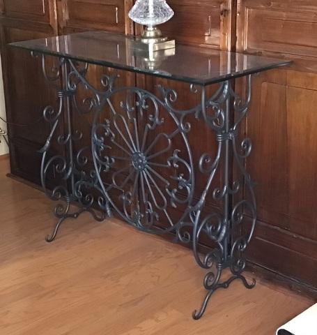 186 - Black Wrought Iron Table w/ Beveled Glass Top