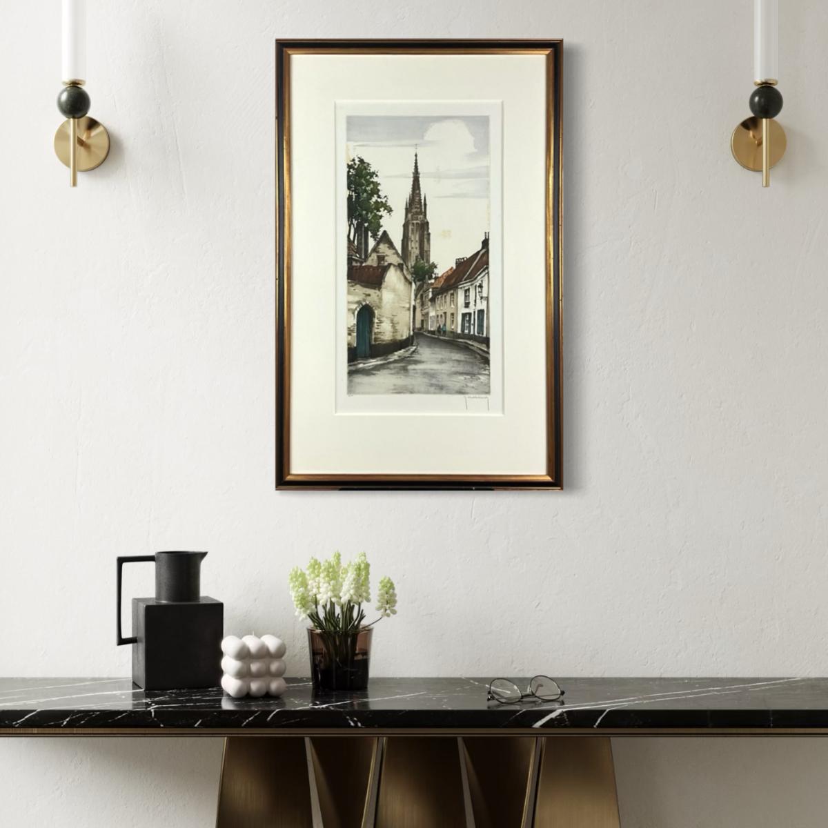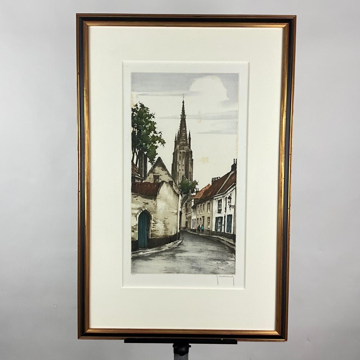 088 City Scene With Church Steeple #68/350 Signed R. Hebbelinck