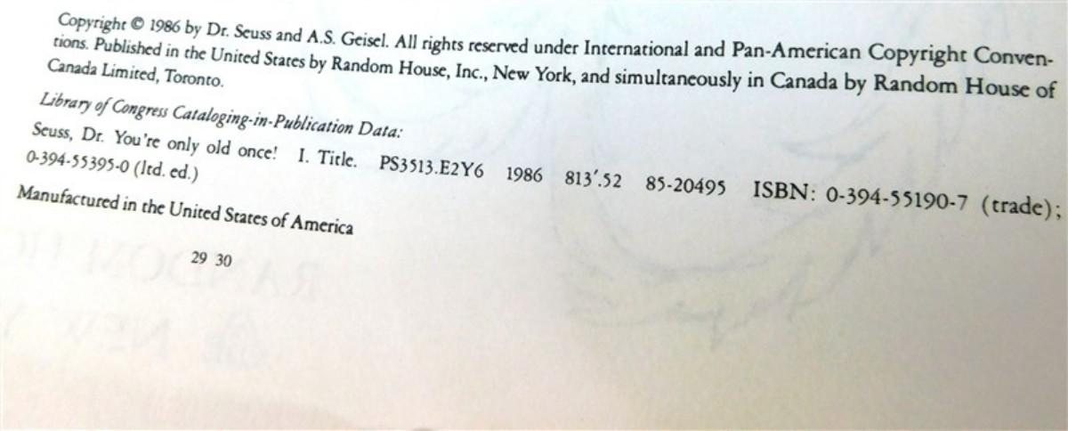 186 Dr Seuss You're Only Old Once A Book for Obsolete Children 11 x 8 1/4 By Random House