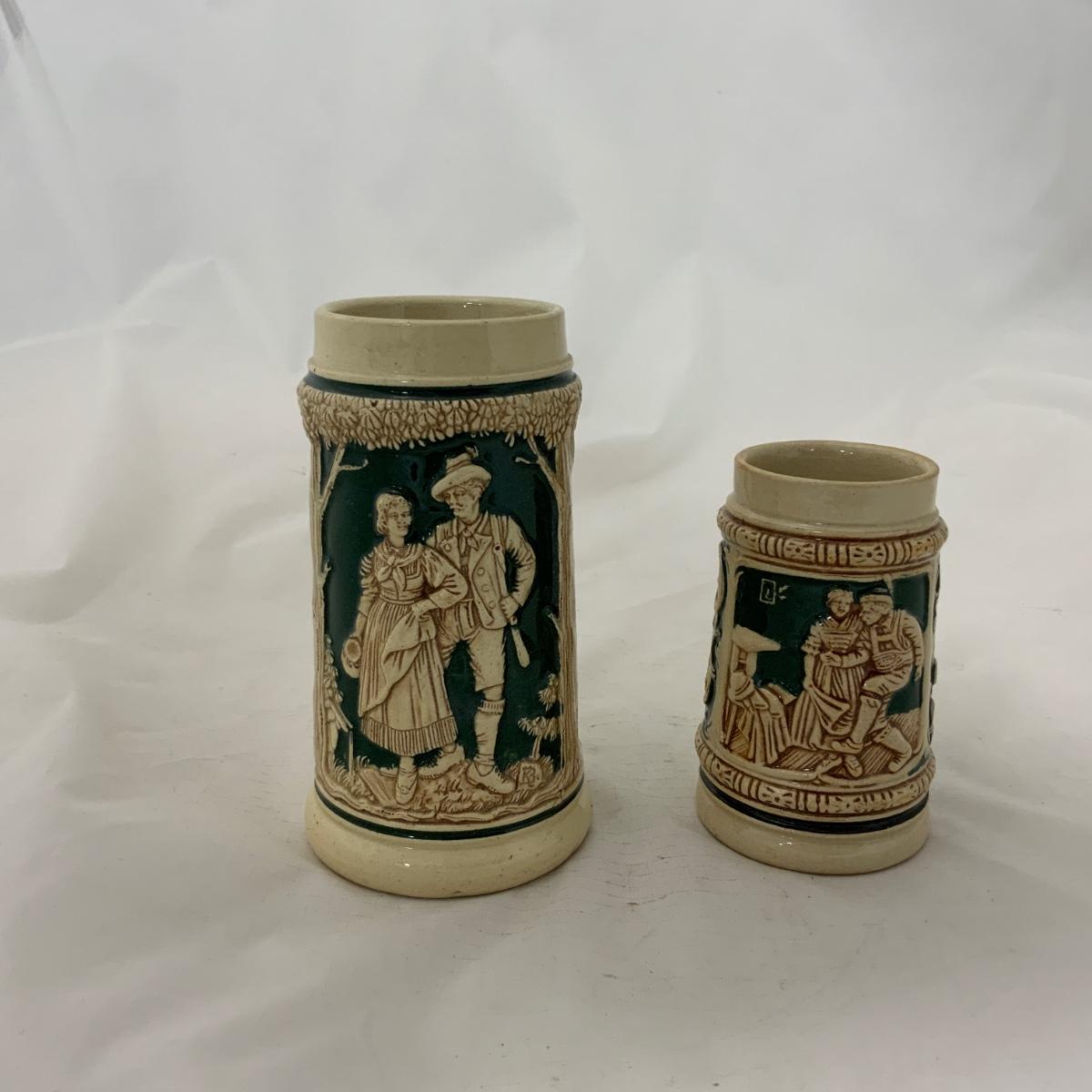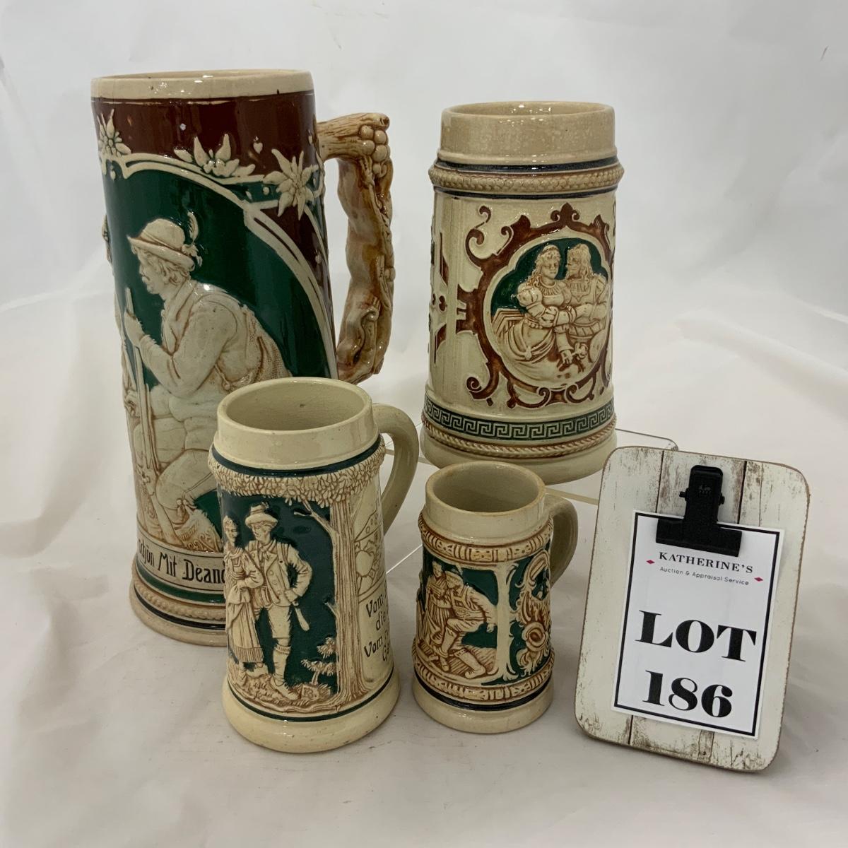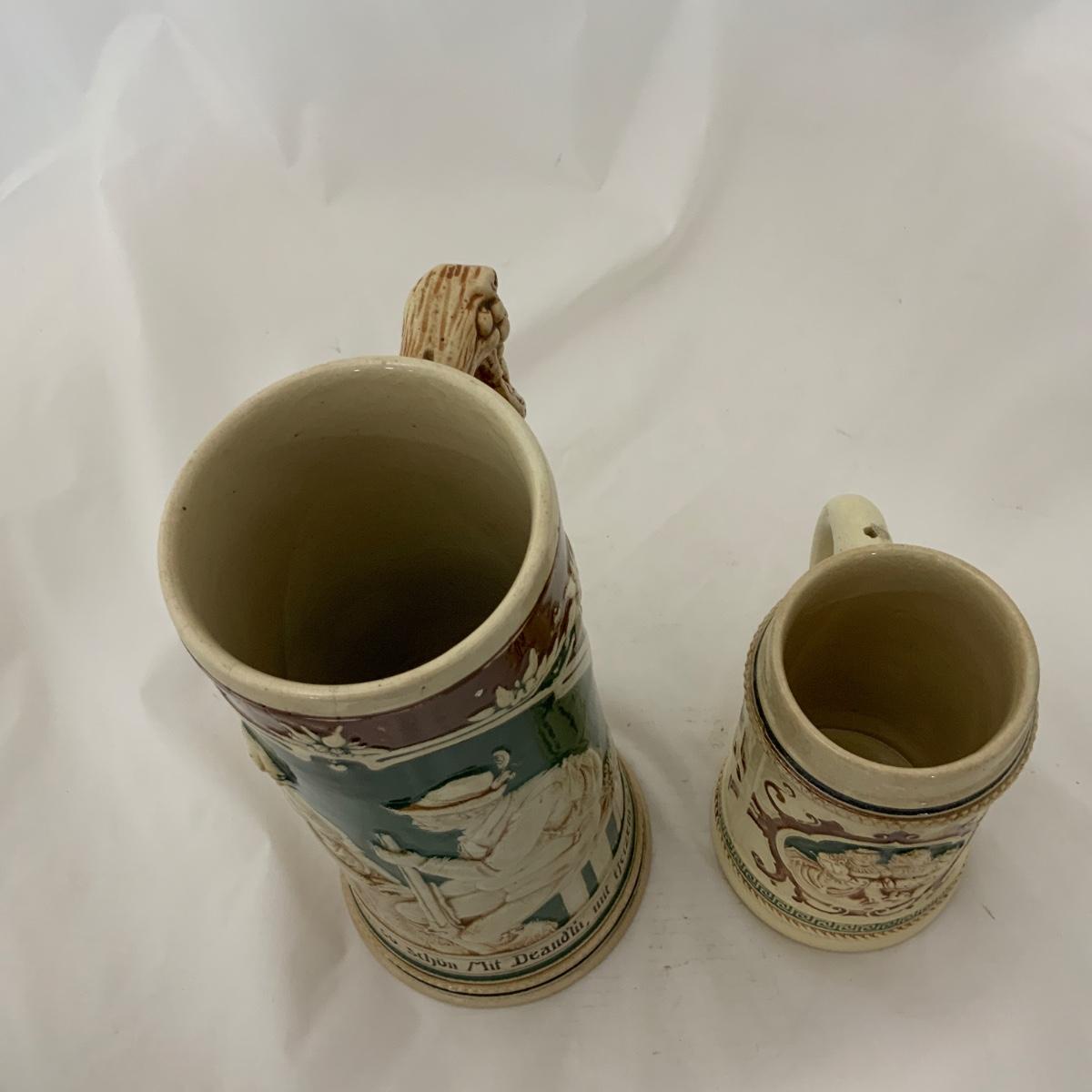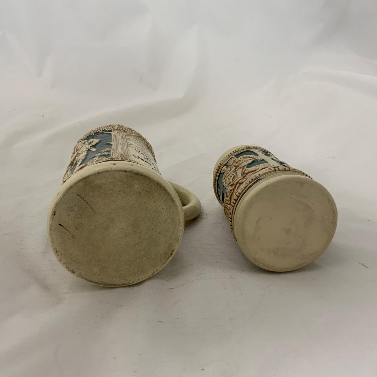Four attractive Stoneware German Steins. All in exceptional antique condition. Grouped together by color. A nice addition to a collection or a start of one! Please see photos for details and condition. ::: Shipping is available on this lot. If you require shipping you must let us know at the close of the auction. We will coordinate with you after the item has been won. Shipping fees will include insurance up to or exceeding the value of all items being mailed. If you have any questions regarding this lot please contact the auctioneer either via this website, by direct email or by phone. PICK UP TIMES and other important information can be found in the TERMS and DESCRIPTION of the auction. Please take a look for pertinent information. Thanks!