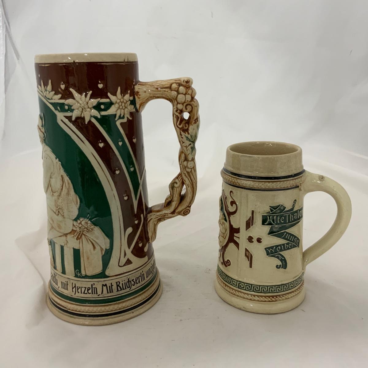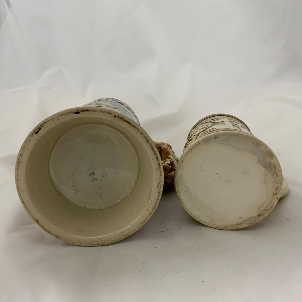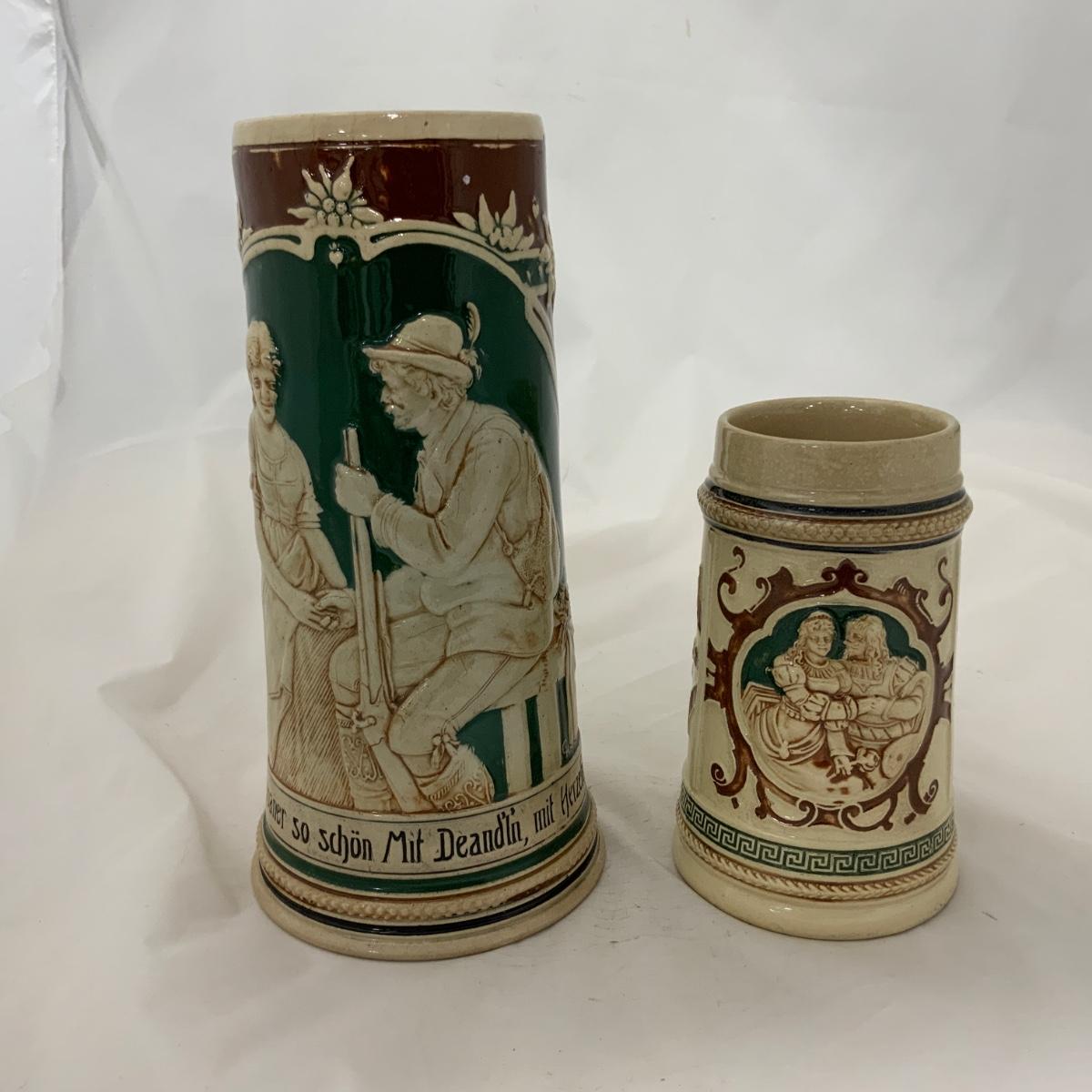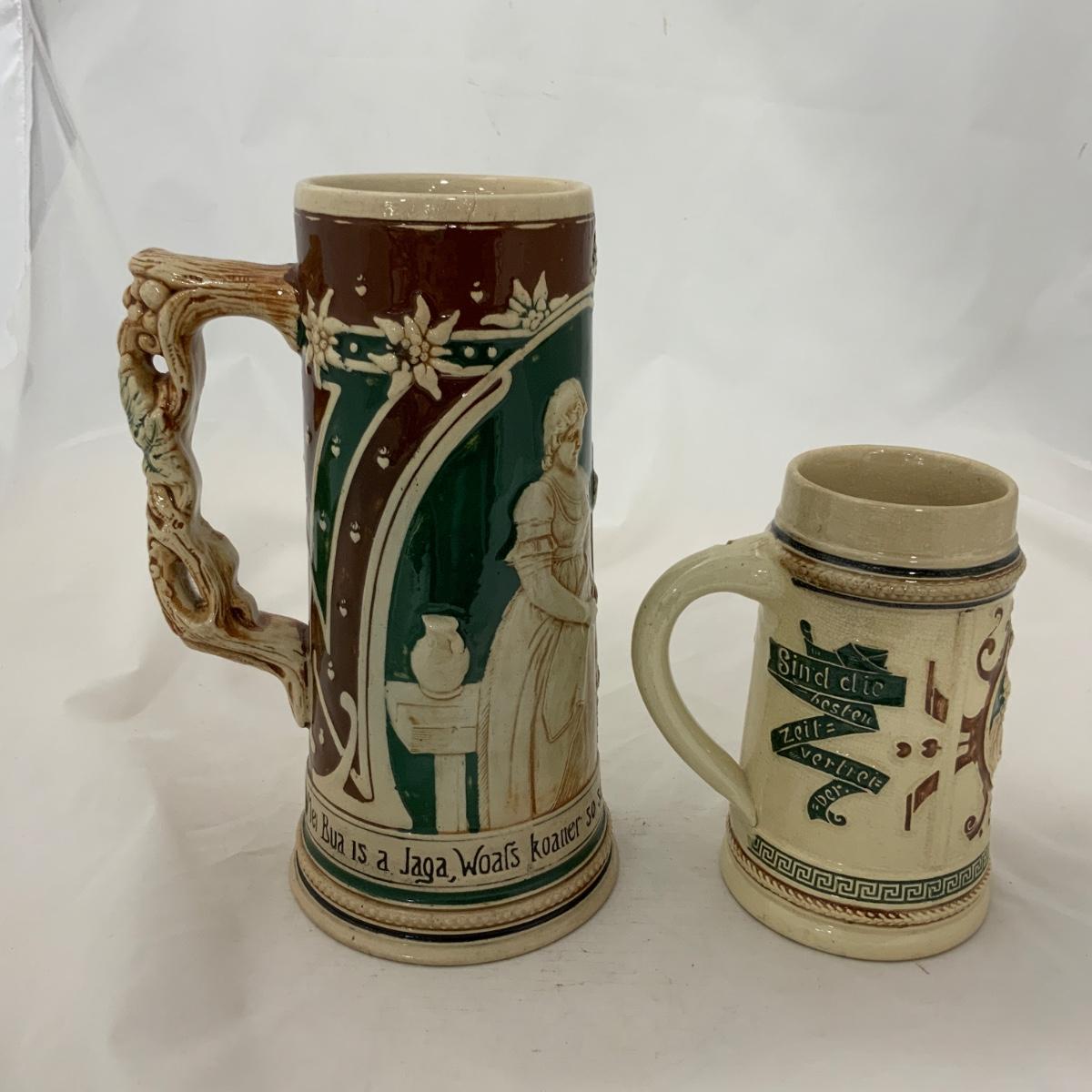 Four attractive Stoneware German Steins. All in exceptional antique condition. Grouped together by color. A nice addition to a collection or a start of one! Please see photos for details and condition. ::: Shipping is available on this lot. If you require shipping you must let us know at the close of the auction. We will coordinate with you after the item has been won. Shipping fees will include insurance up to or exceeding the value of all items being mailed. If you have any questions regarding this lot please contact the auctioneer either via this website, by direct email or by phone. PICK UP TIMES and other important information can be found in the TERMS and DESCRIPTION of the auction. Please take a look for pertinent information. Thanks!