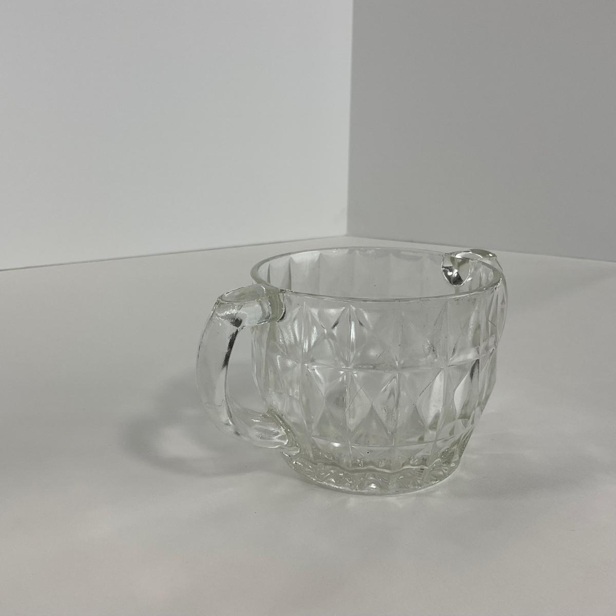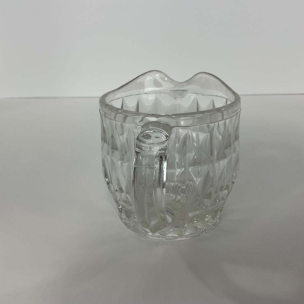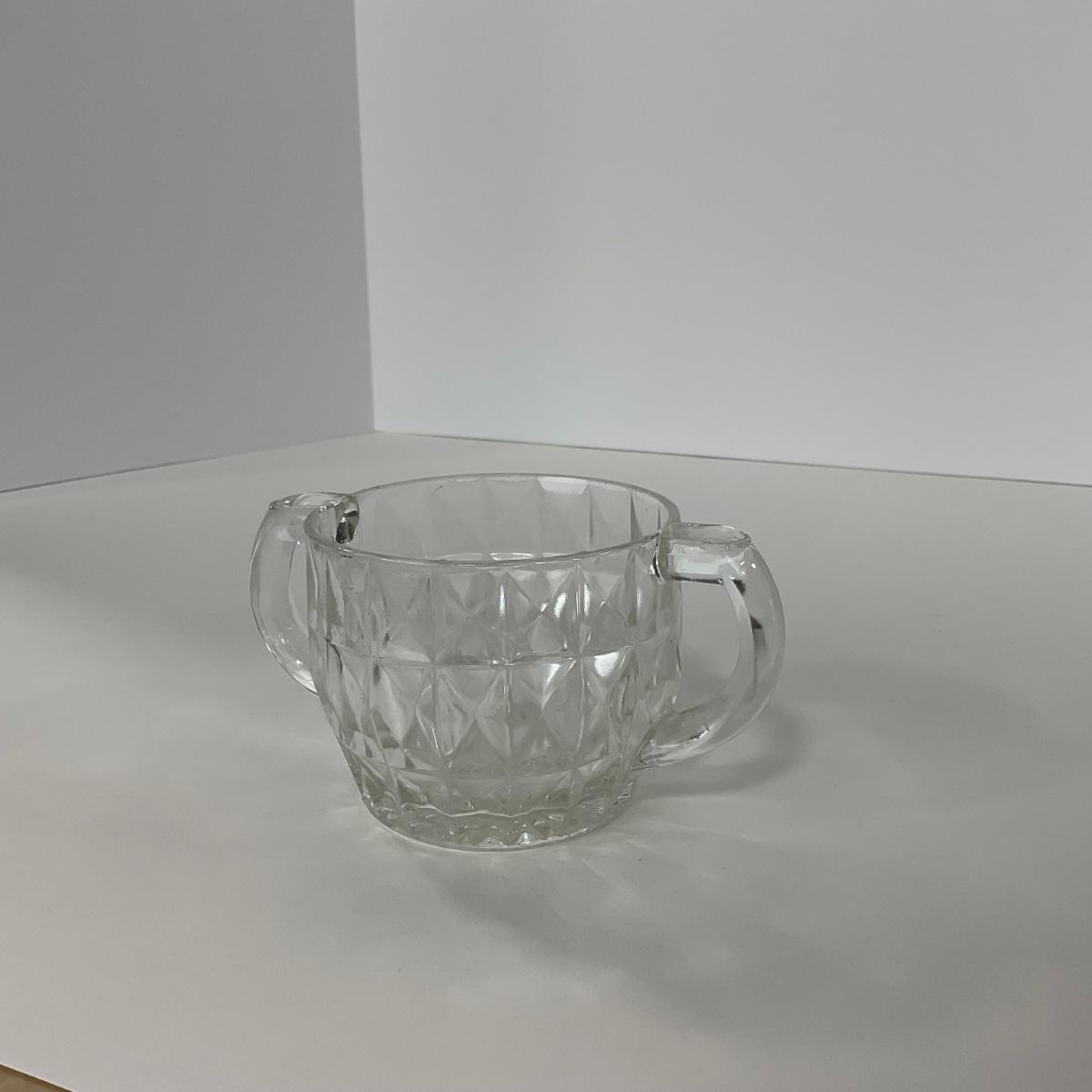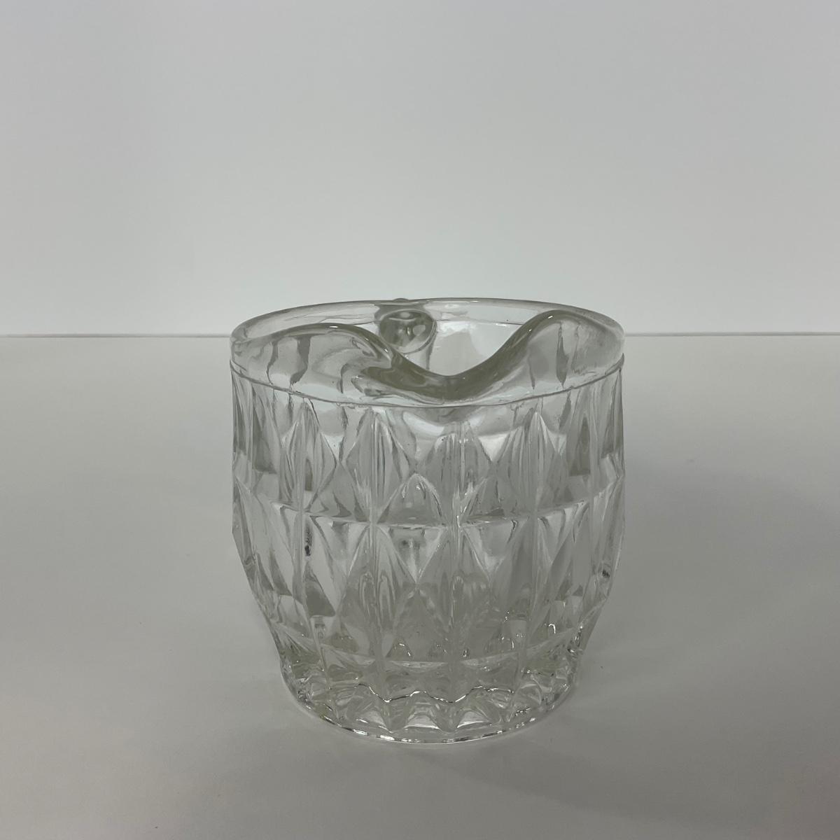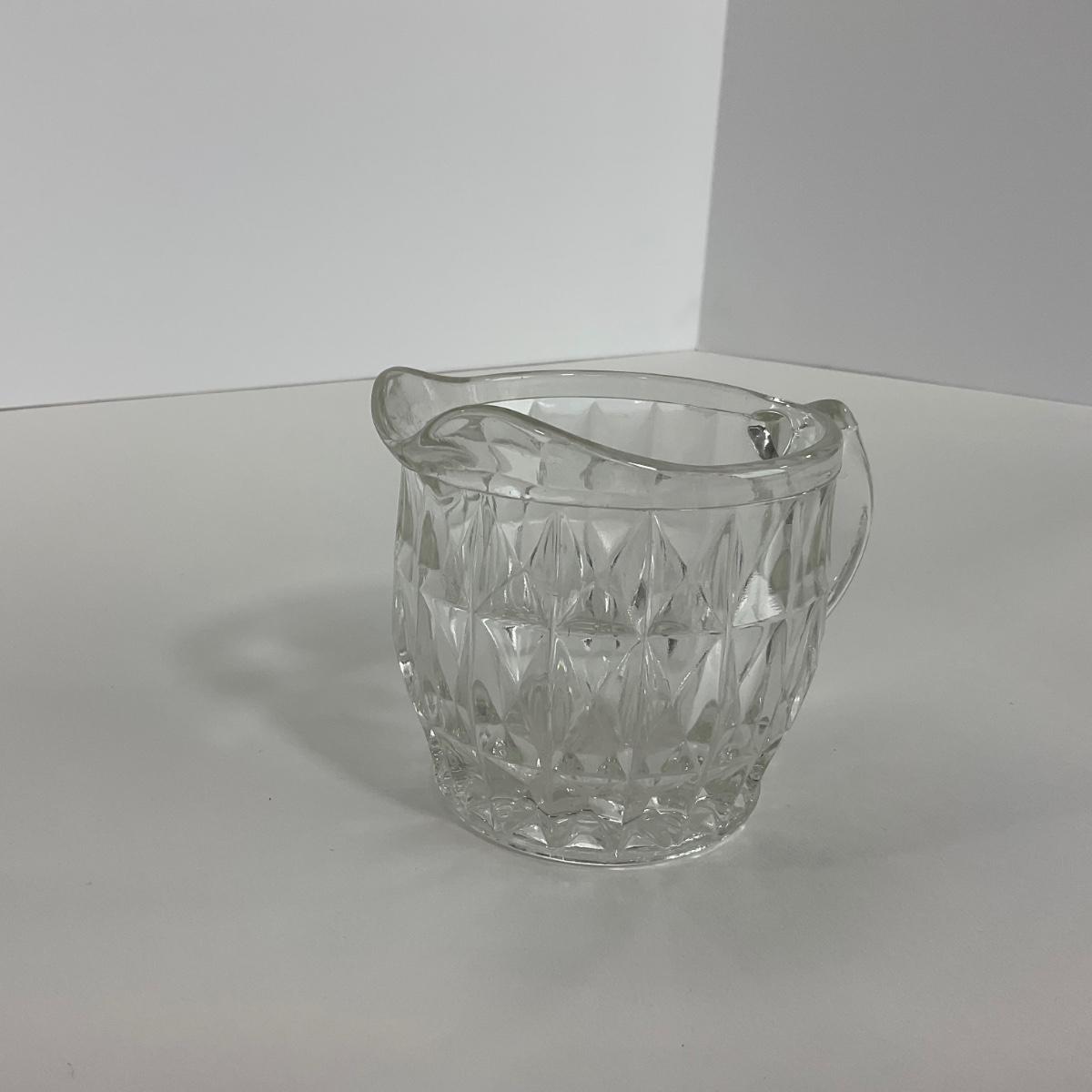 Two clear glass Windsor Diamond Jeanette Glass Co. (1932-1946) pieces including one lidded sugar and one creamer. Please see photos for details and condition. ::: Shipping is available on this lot. If you require shipping you must let us know at the close of the auction. We will coordinate with you after the item has been won. Shipping fees will include insurance up to or exceeding the value of all items being mailed. If you have any questions regarding this lot please contact the auctioneer either via this website, by direct email or by phone. PICK UP TIMES and other important information can be found in the TERMS and DESCRIPTION of the auction. Please take a look for pertinent information. Thanks!
