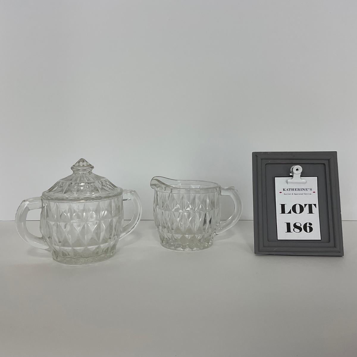 -186- GLASSWARE | Windsor Diamond Jeanette Glass Co. | Creamer & Sugar